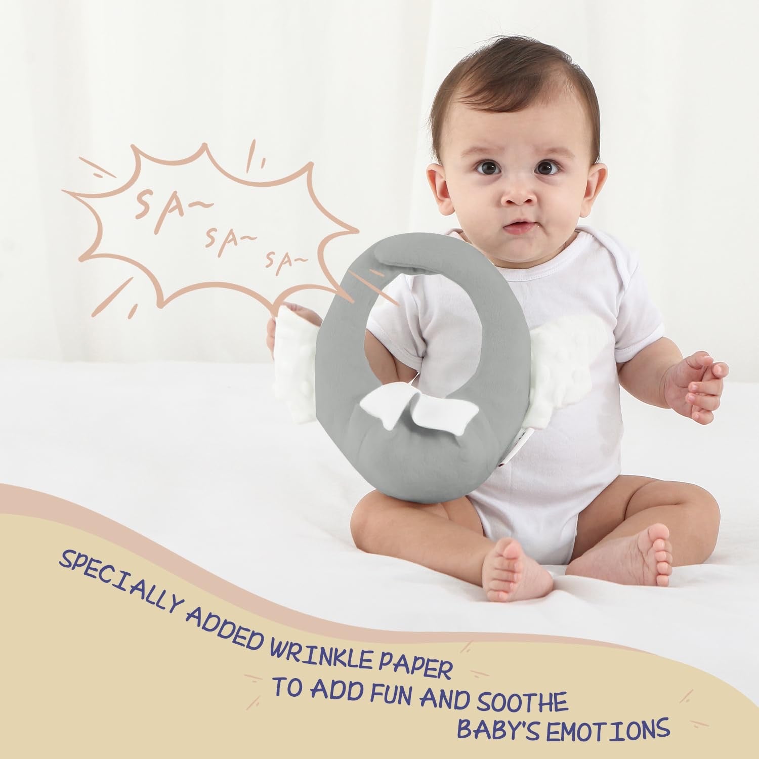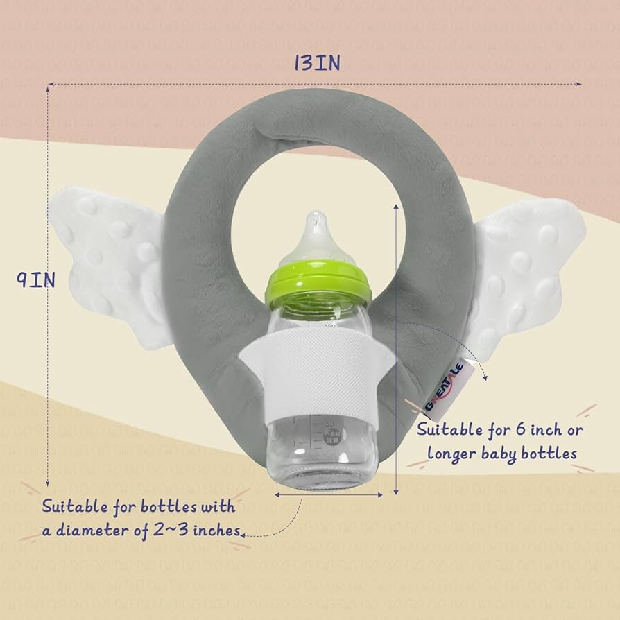 Aumenta la diversión: este cojín de alimentación para biberones cuenta con un bonito diseño de ala de ángel, y hemos añadido especialmente papel arrugado para que haga un sonido de susurro. No solo mejora la diversión de la alimentación, sino que también estabiliza las emociones del bebé.