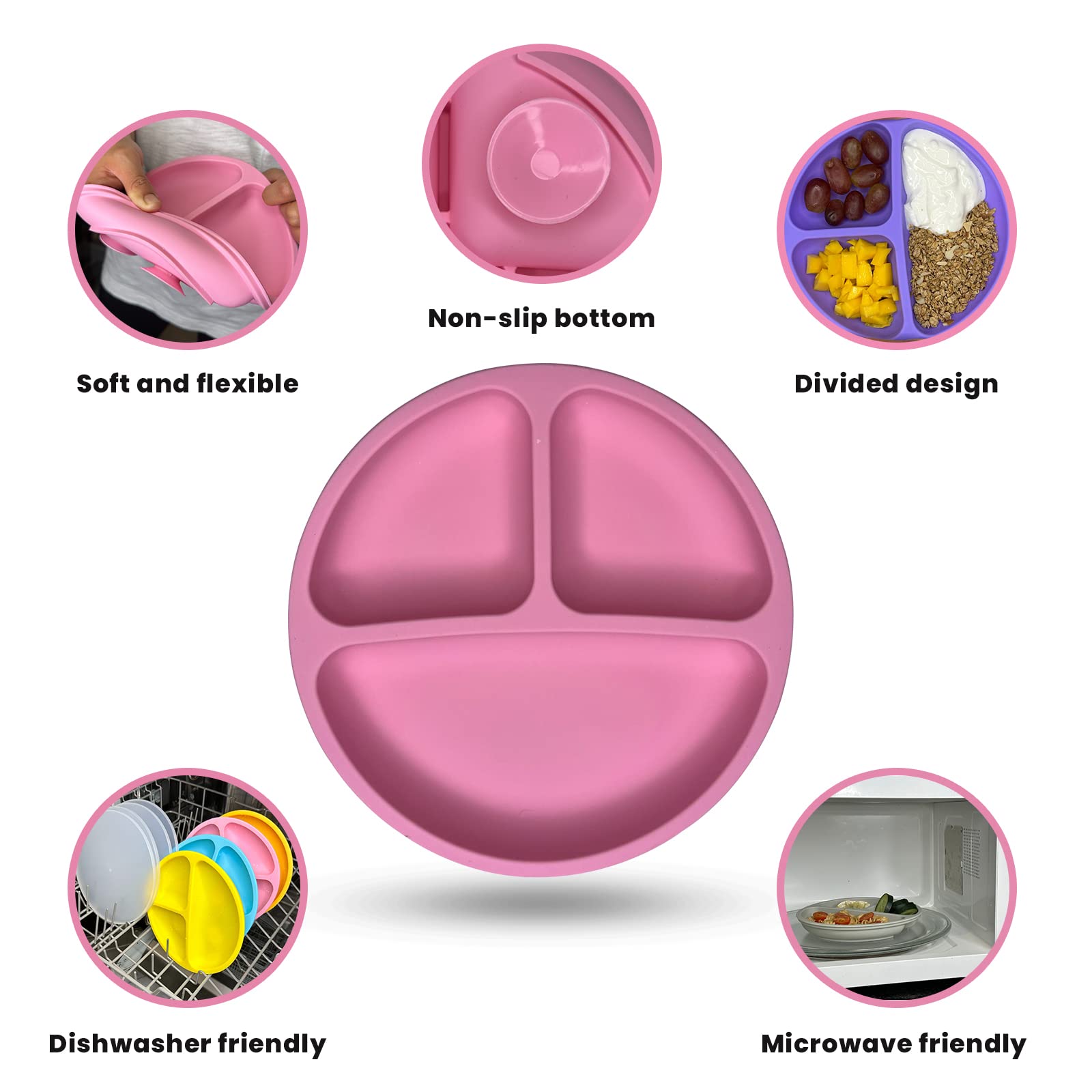 Platos de bebé no tóxicos: 100% un plato de silicona de grado alimenticio de alta calidad, libre de productos químicos nocivos, lo que los convierte en una excelente opción para alimentar a tus niños pequeños