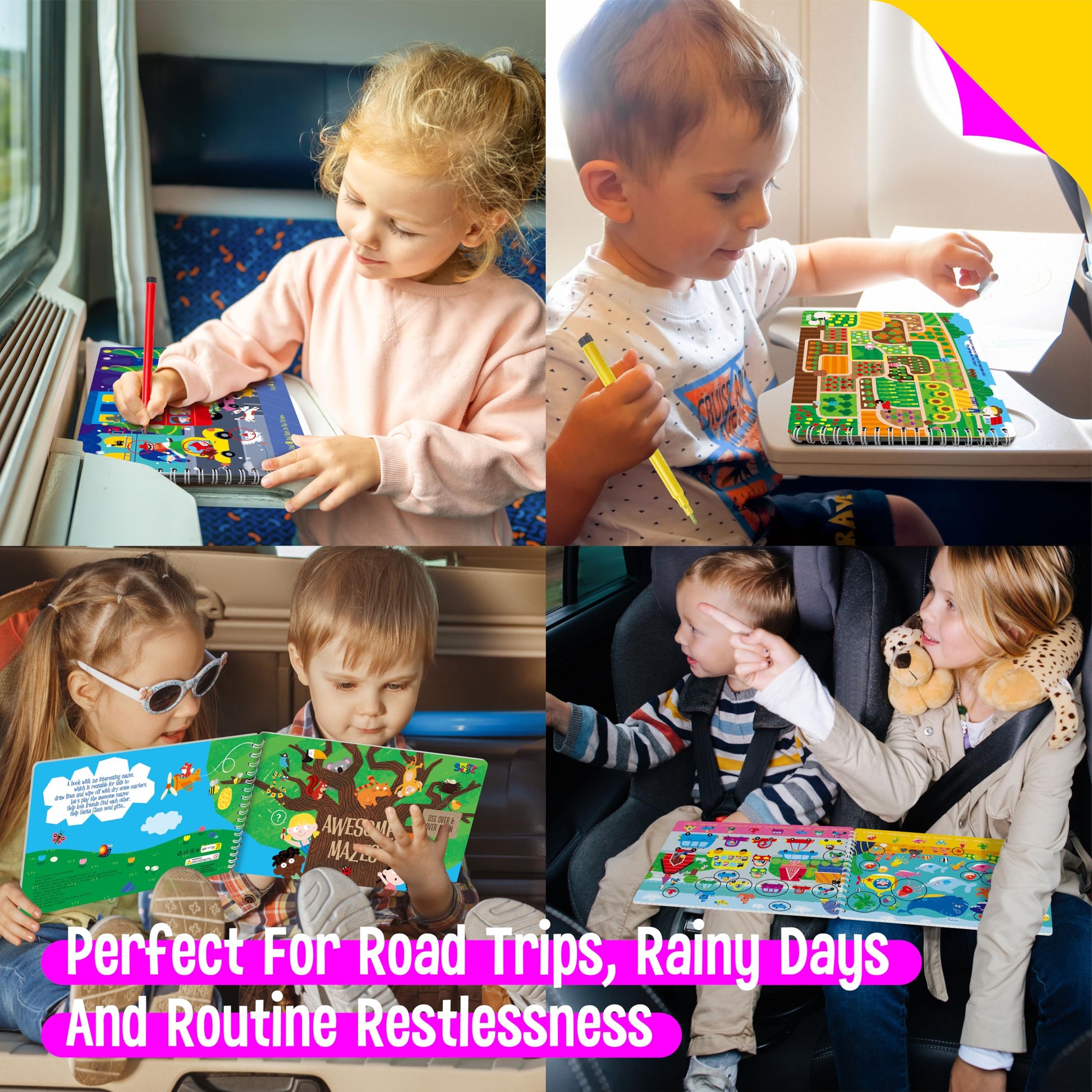 - 60 actividades reutilizables: viene con 2 libros de actividades de borrado en seco (un pad de juego de viaje y un libro de laberinto), que contiene 60 juegos en total. Cuenta con varios laberintos y juegos de búsqueda y búsqueda en diferentes temas. Puedes obtener estos juegos de desviación de una vez por todas en 2 almohadillas. Diferentes opciones de juego te esperan a ti y a tus hijos, lo que te permite disfrutar de horas de diversión mientras estás aburrido.
