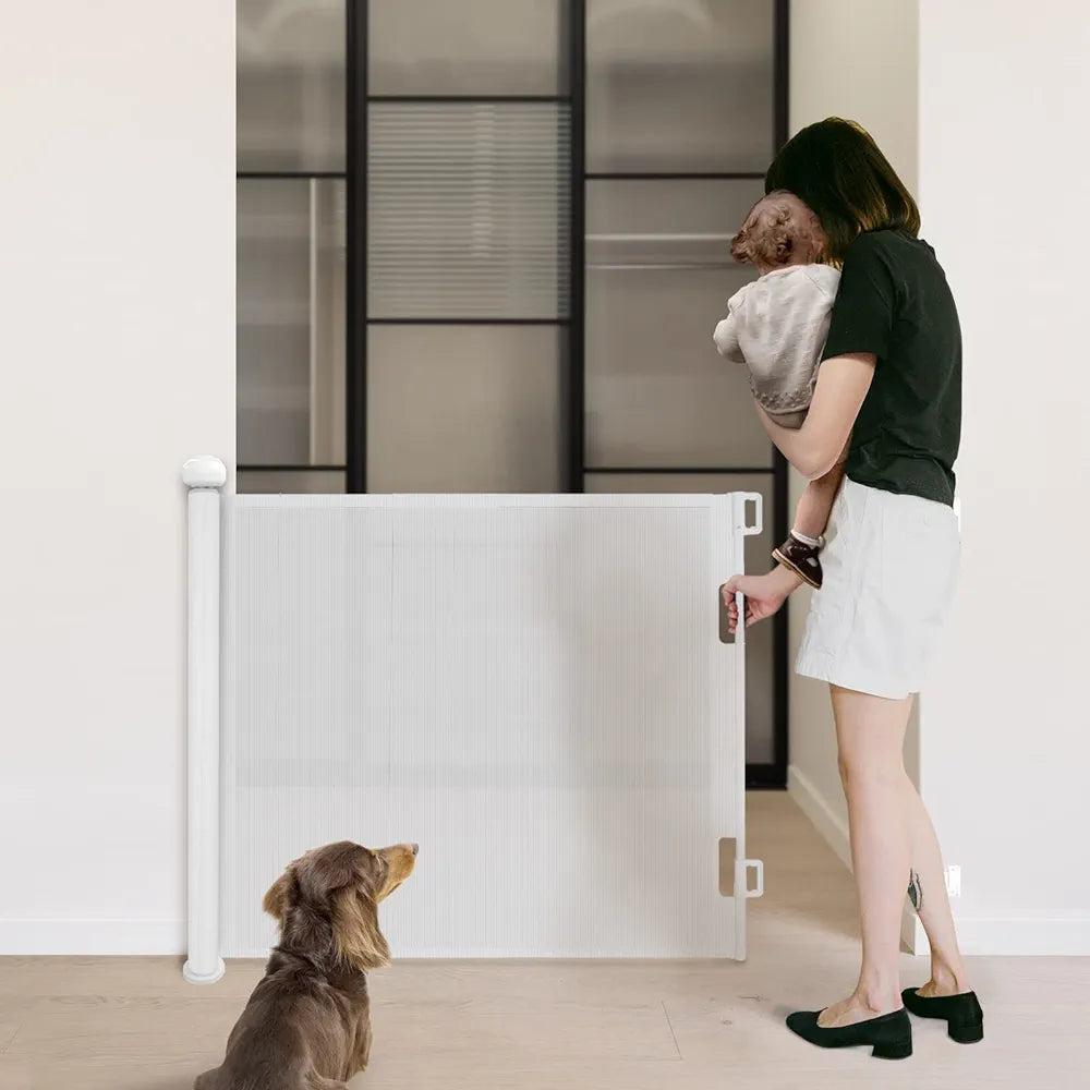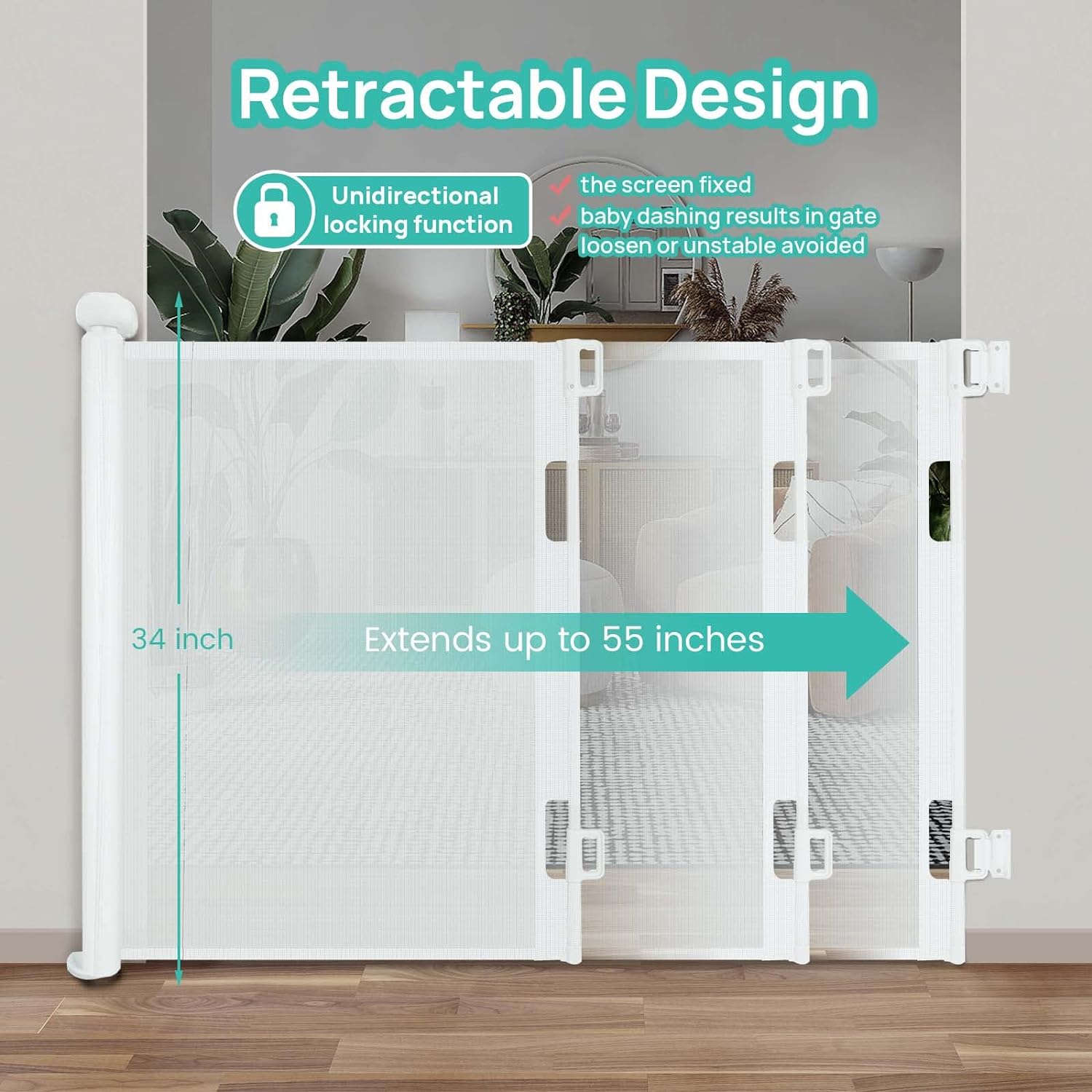 Stcockis-Puerta retráctil para bebés de 55 pulgadas de ancho x 34 pulgadas de alto, para interiores y exteriores, blanco