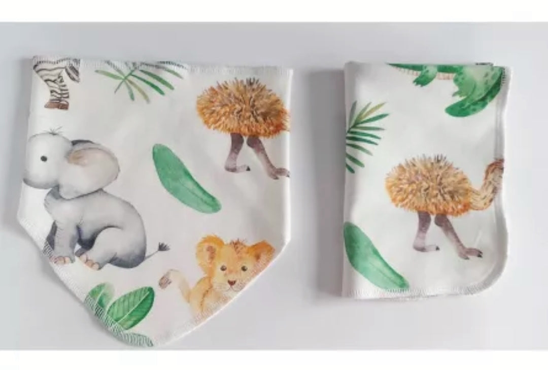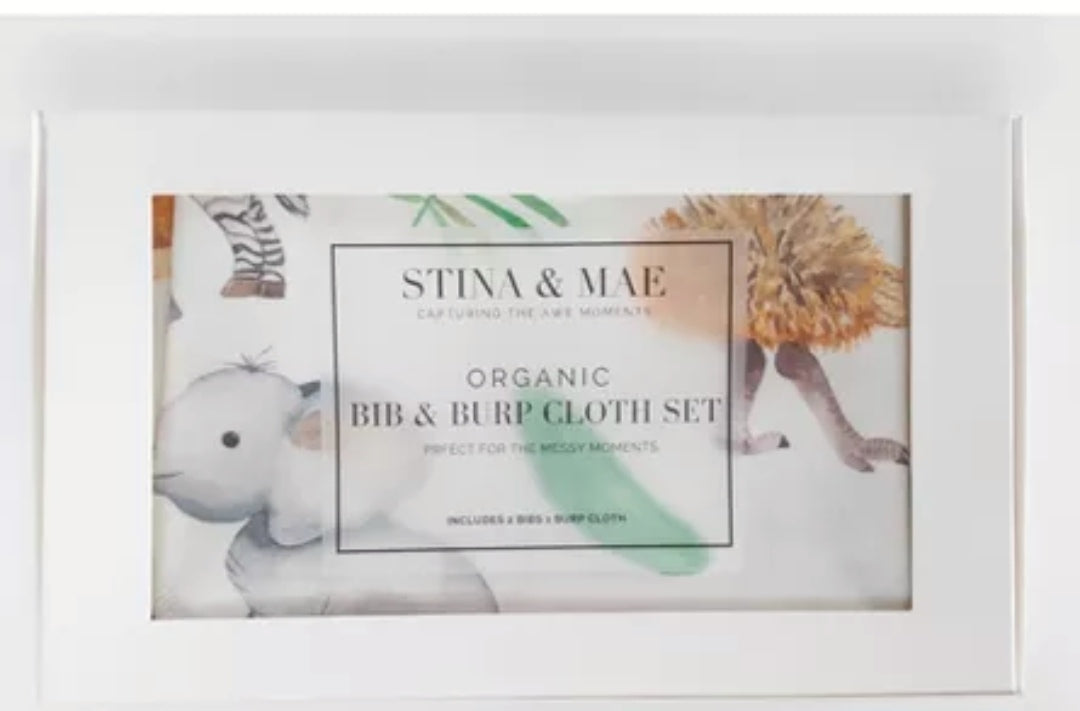Algodón 100% orgánico, lavable en máquina. Incluye 2 piezas: (1) babero y (1) paño para eructo. *Caja con detalles