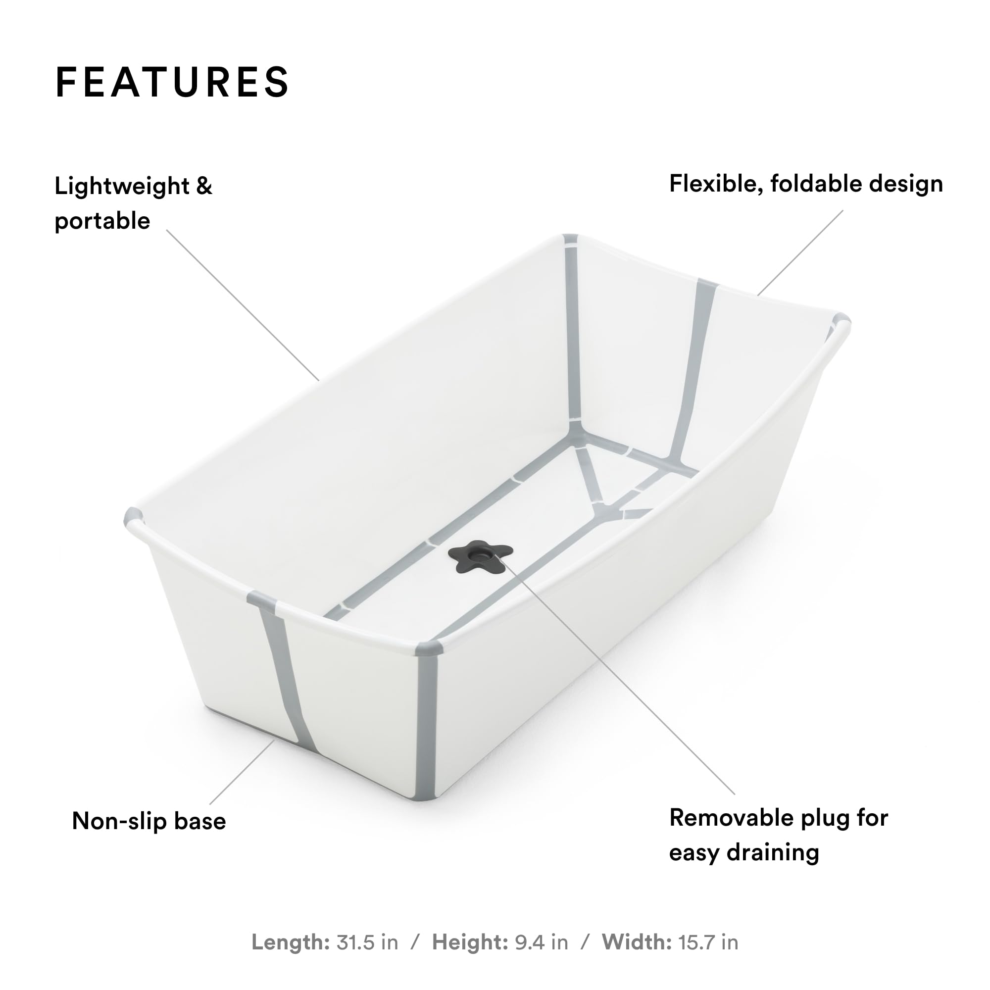 Stokke Flexi Bath XL, color blanco, espaciosa bañera plegable para bebé, ligera y fácil de almacenar