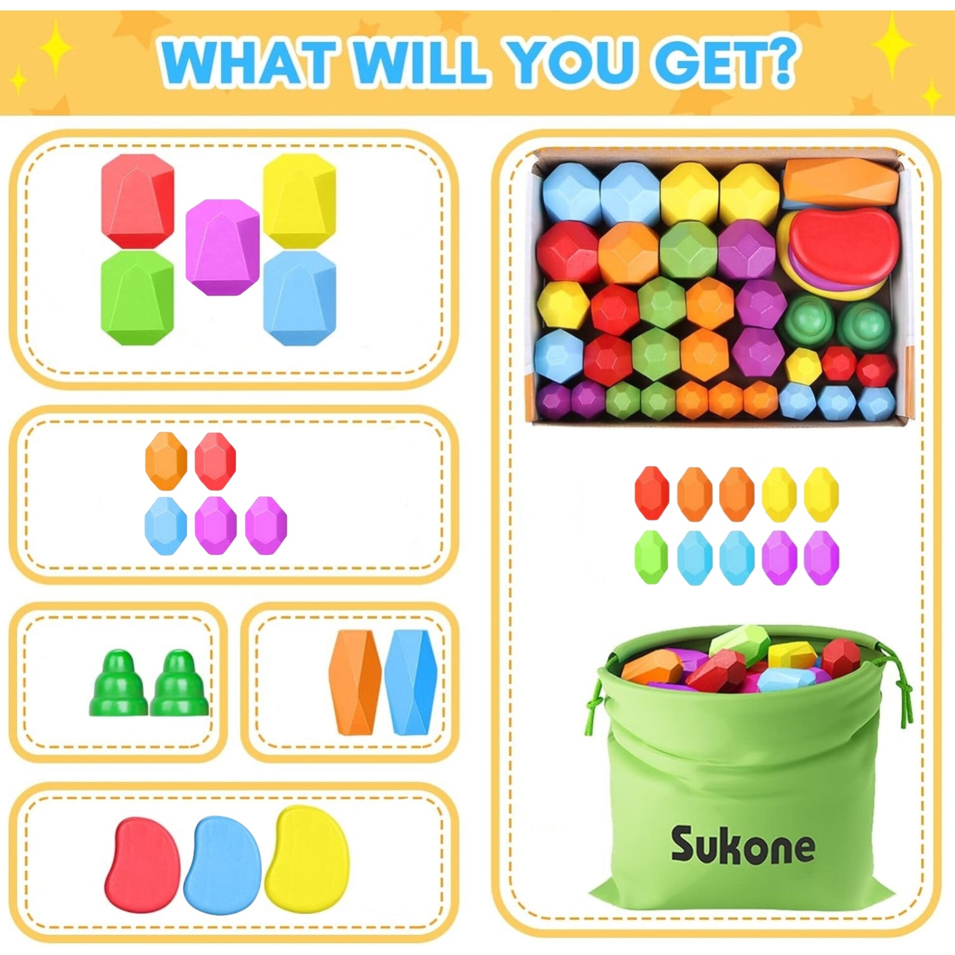 Sukone- 27 piezas de madera para clasificar rocas apilables