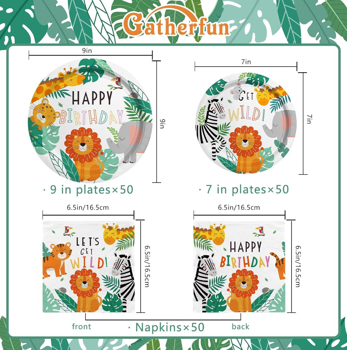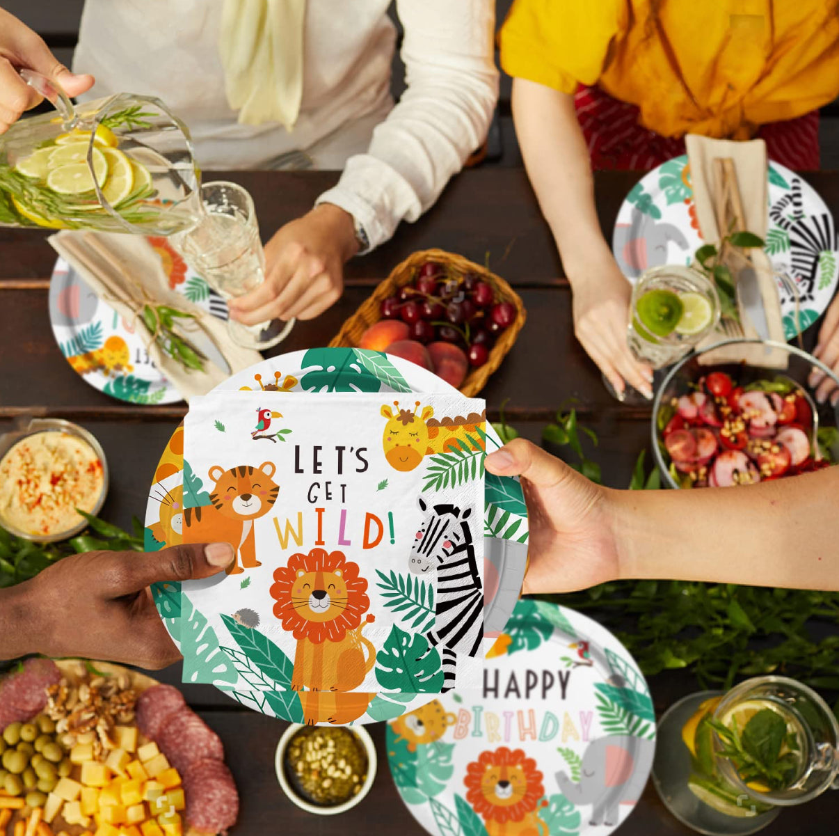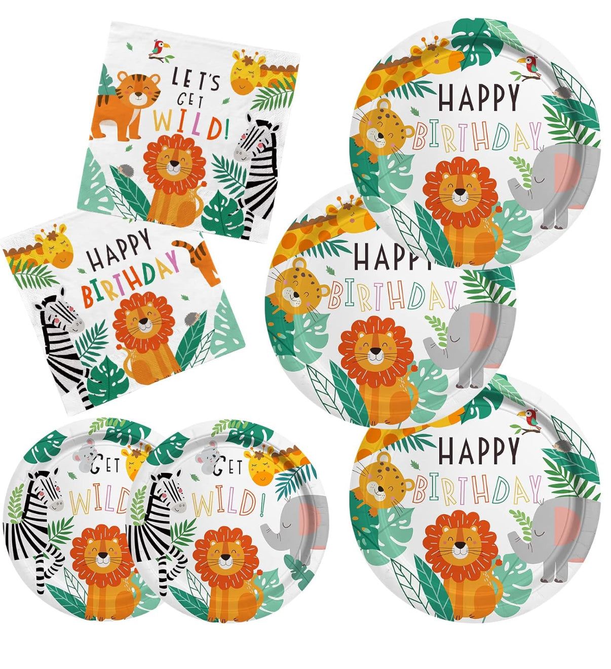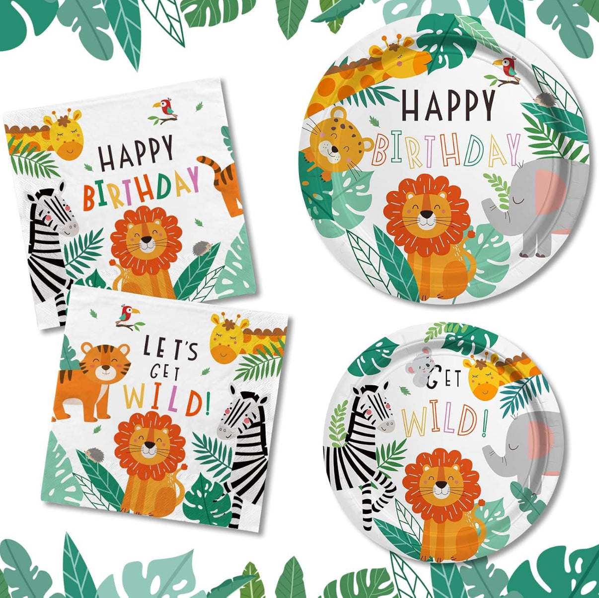 Suministros de fiesta de cumpleaños de safari, 50 personas