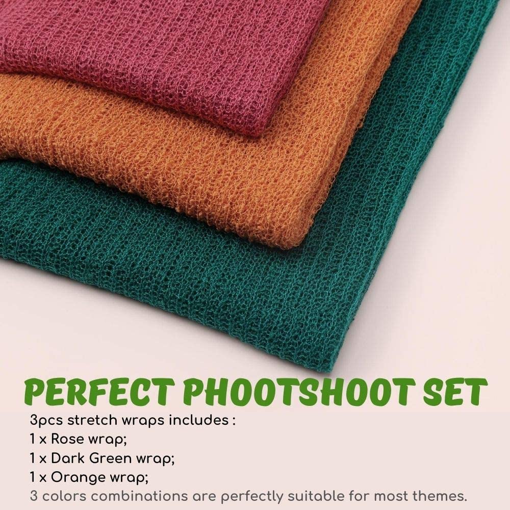 Sunmig Accesorios de fotografía para recién nacidos, 3 piezas de envolturas elásticas para bebés