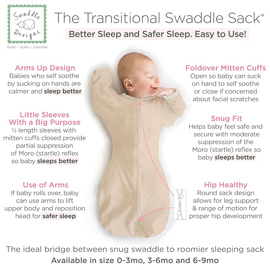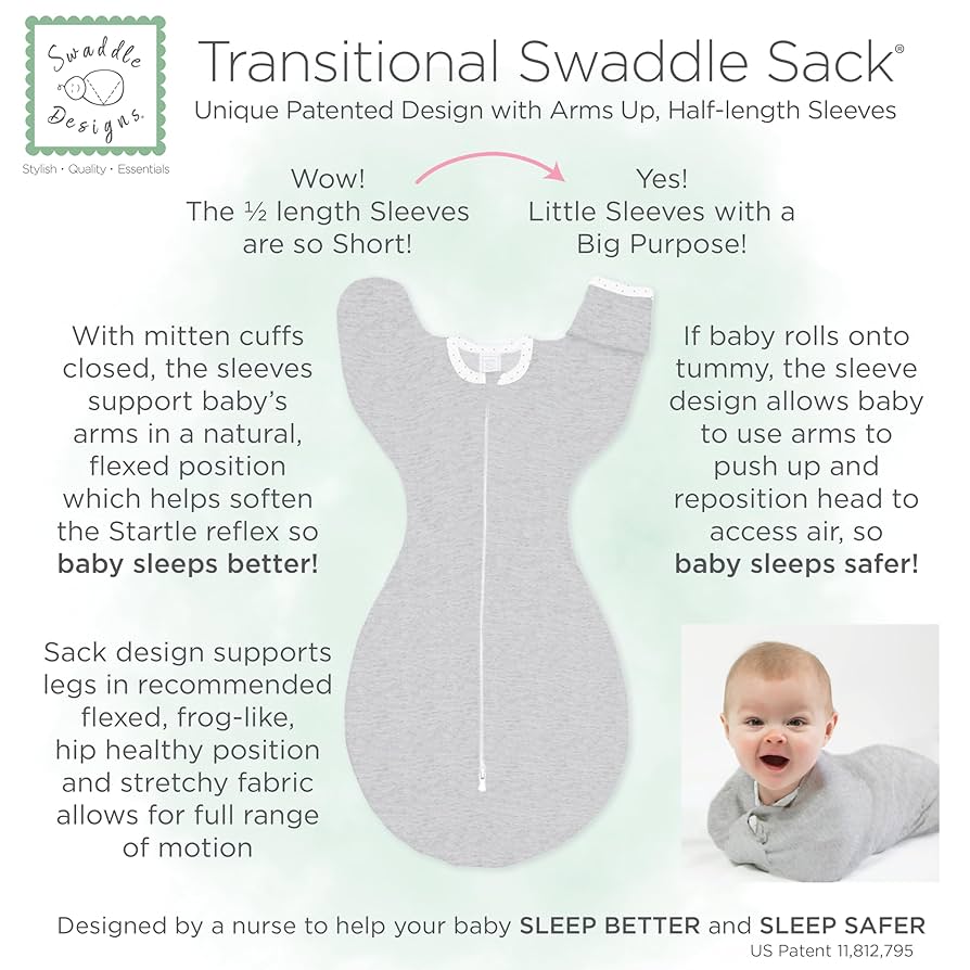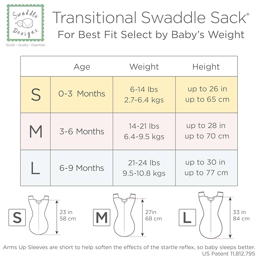 SwaddleDesigns - Saco de transición para envolver con mangas de media longitud, Talla M