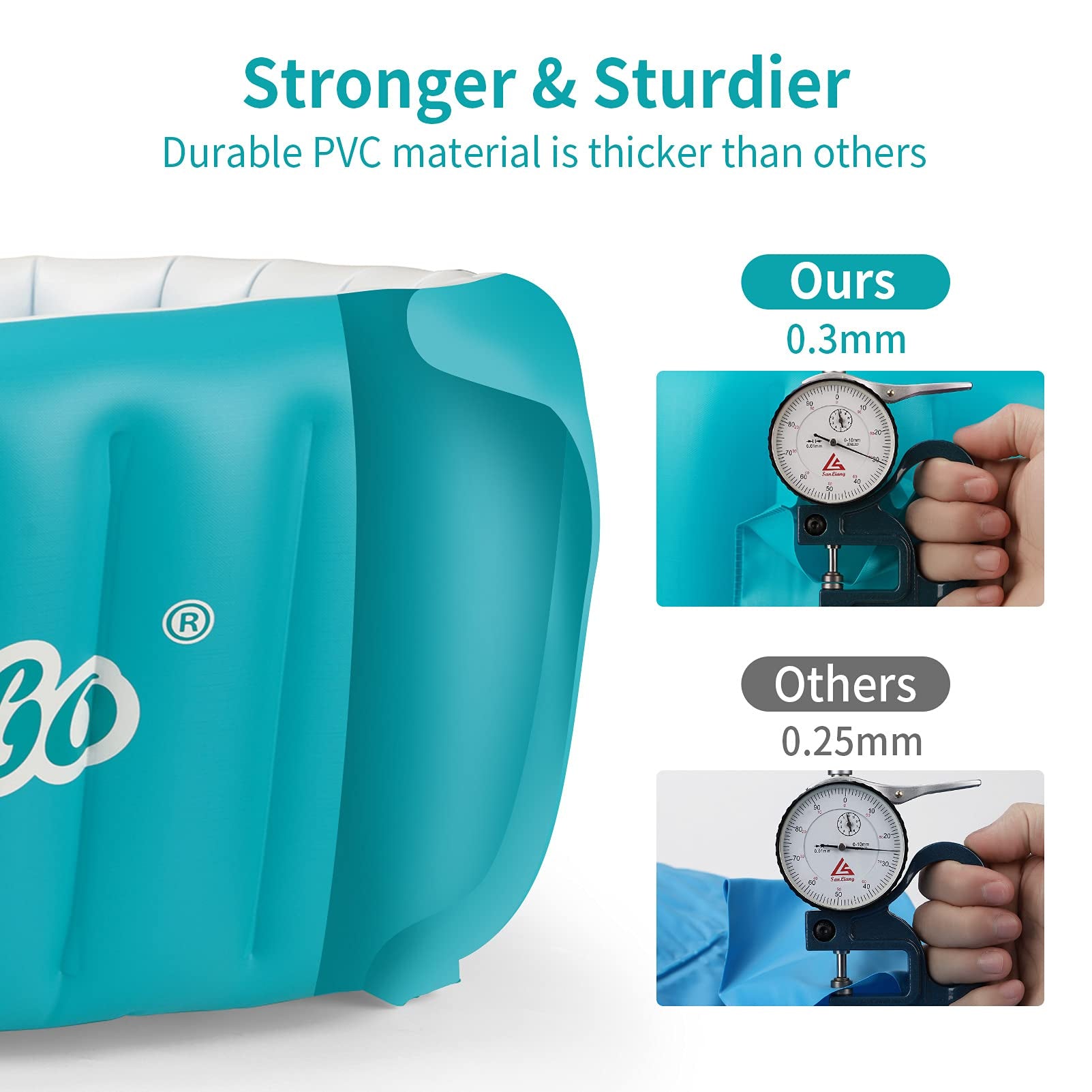 Cuenta con un tapón de drenaje y bucle en la parte superior para colgar, de secado rápido y almacenamiento cómodo después del baño del bebé. Tamaño (pulgadas): 32.3 pulgadas de largo x 22.4 pulgadas de ancho x 11 pulgadas de alto.