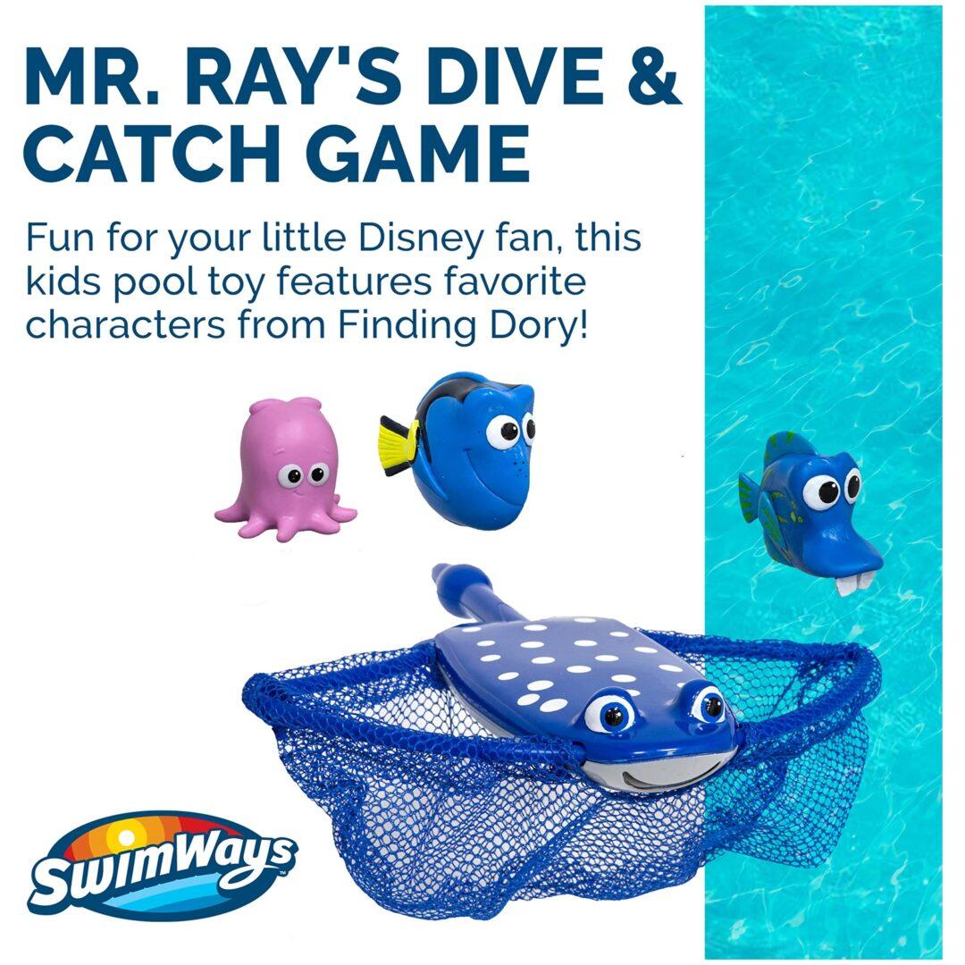 Divertido juego de piscina: tira a los personajes de buceo en la piscina y luego nade para recuperarlos con la red Mr. Ray: cada personaje flota a diferentes profundidades, añadiendo a la diversión de atrapar los personajes