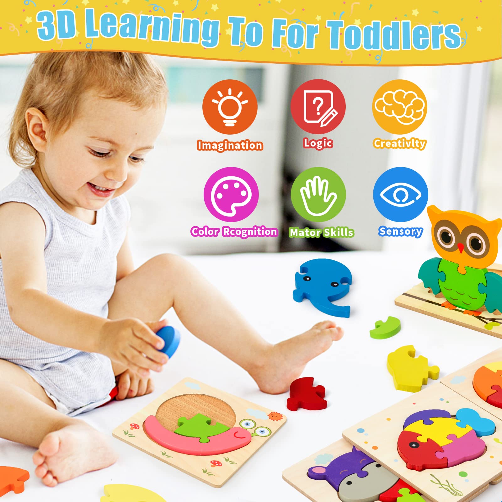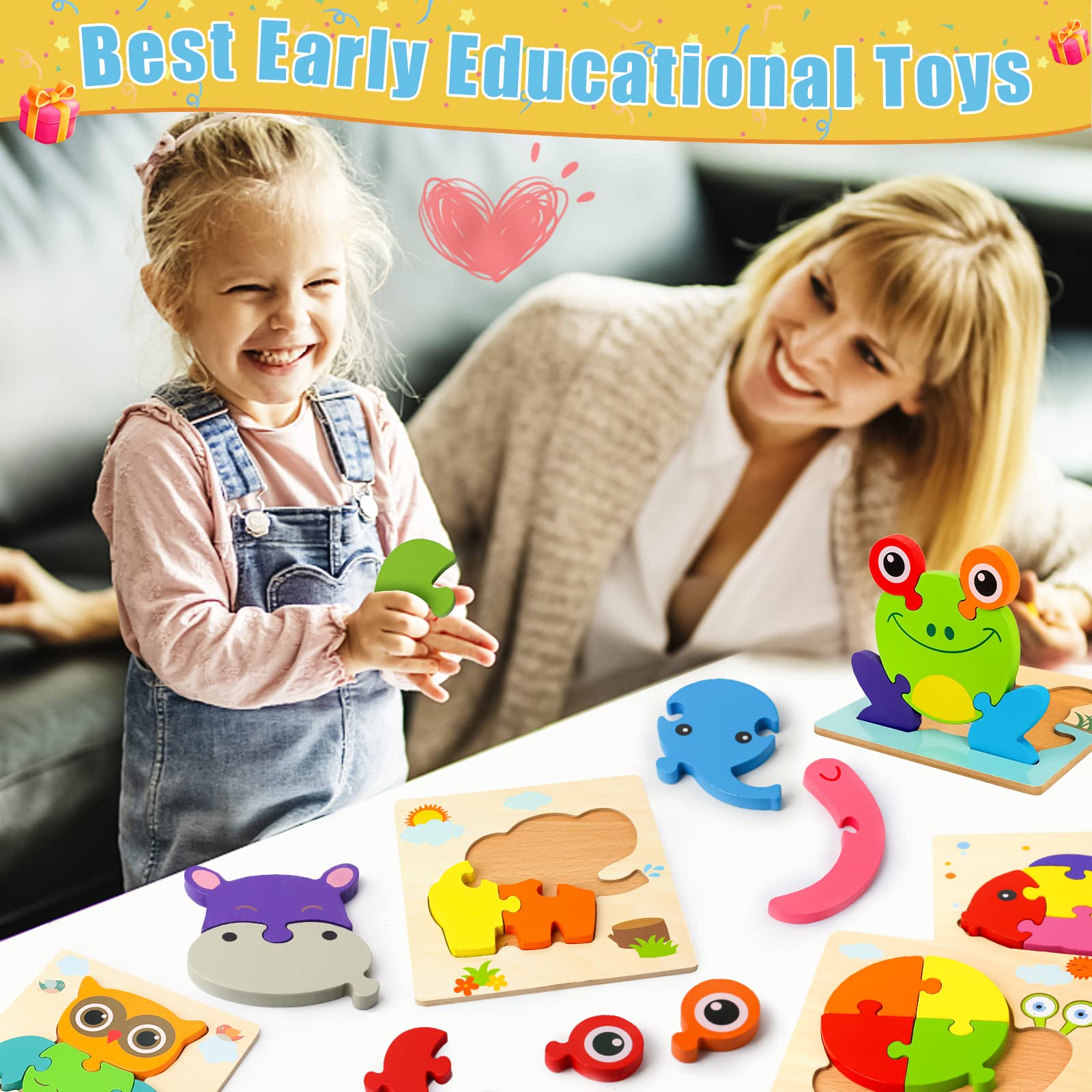 Symdiro Rompecabezas de madera para niños pequeños de 1 a 3 años