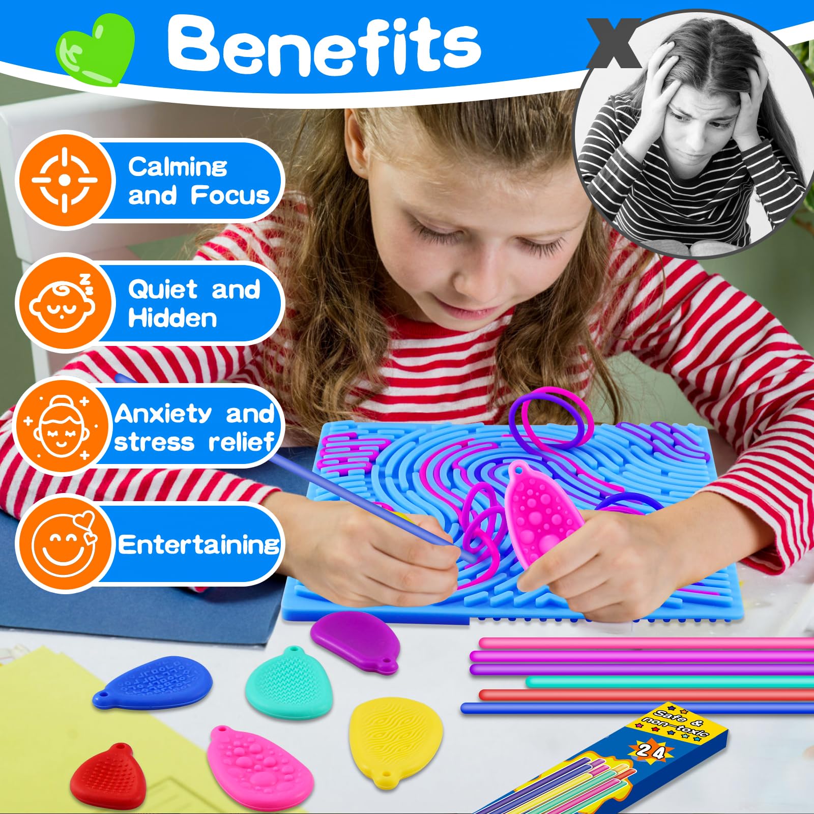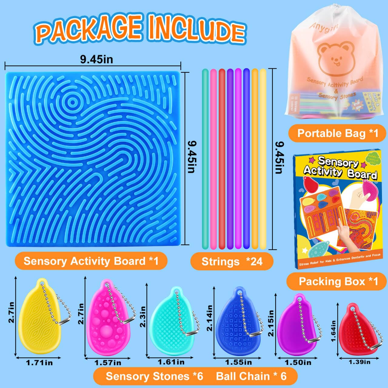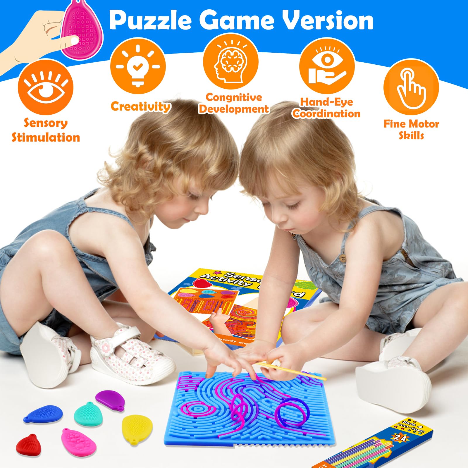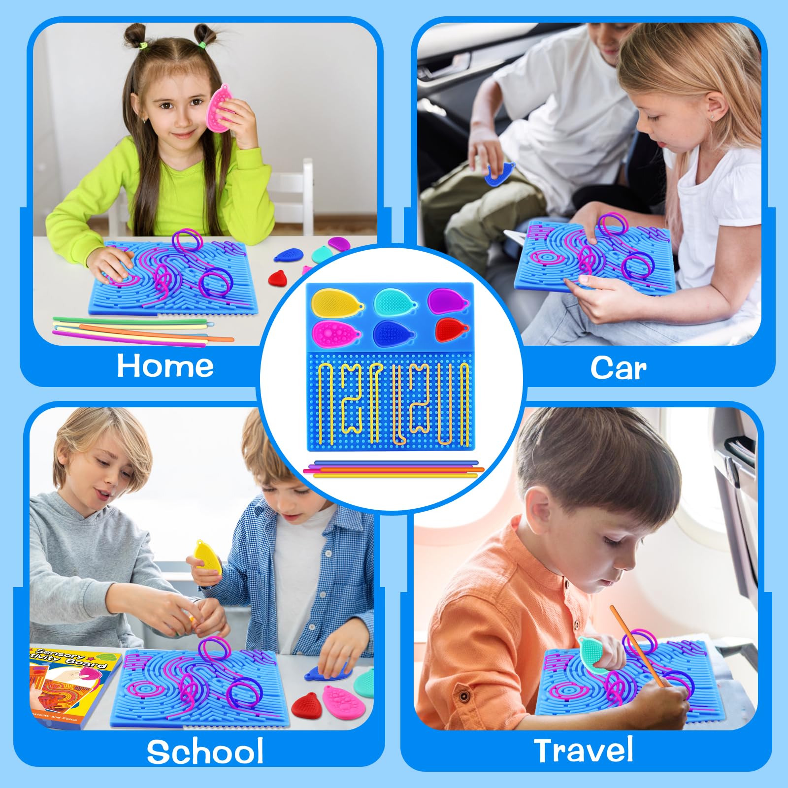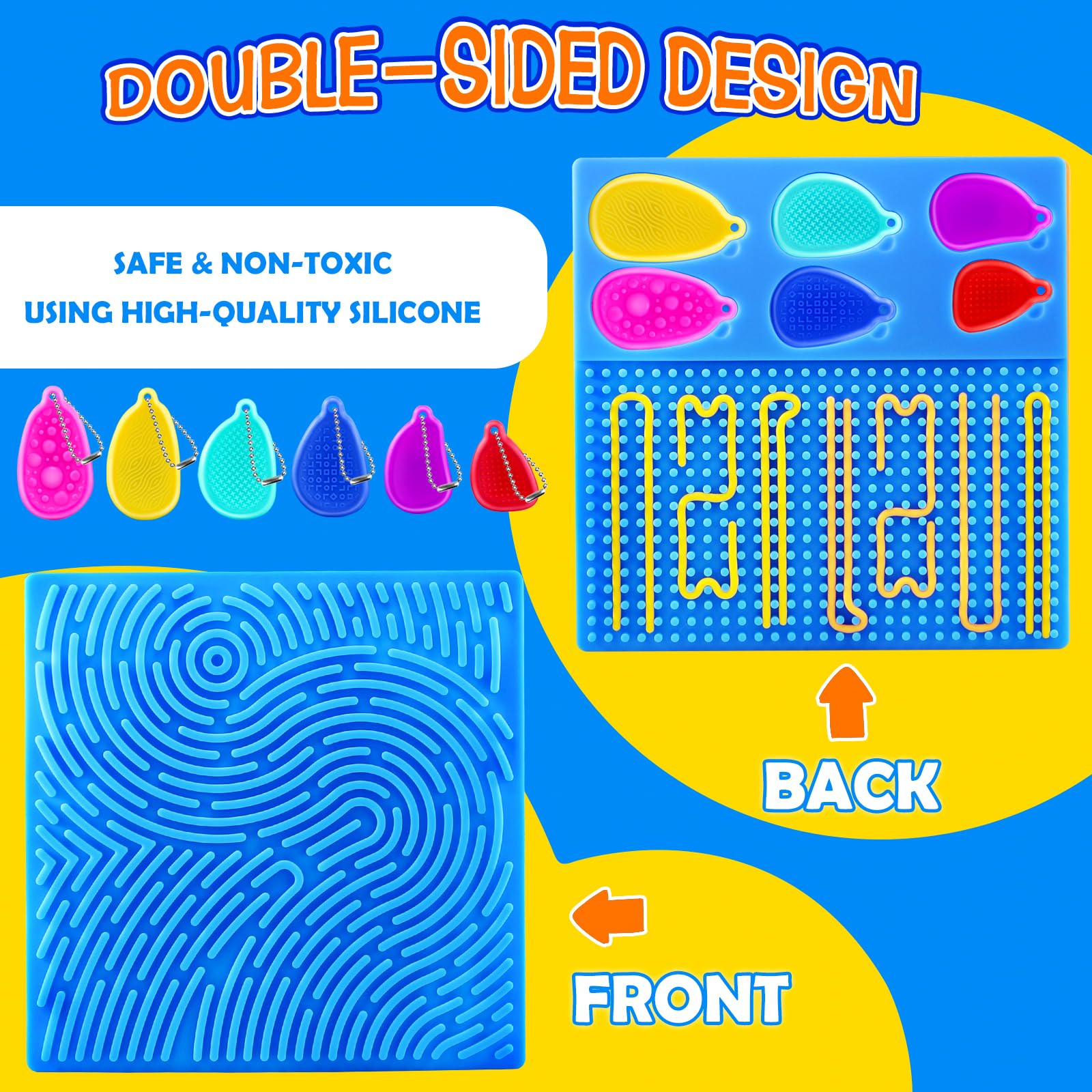 Tablero de actividades sensoriales: juguetes de silicona de doble cara con 6 piedras sensoriales