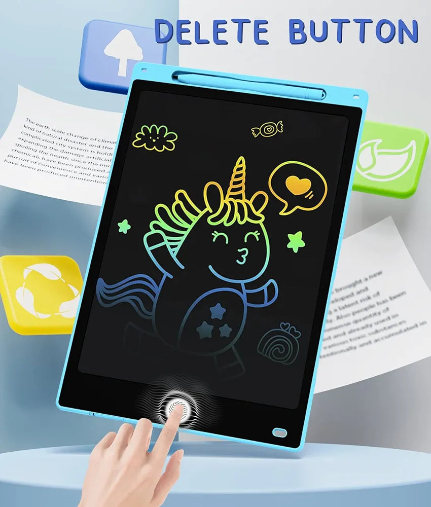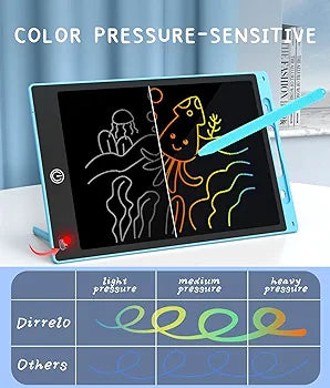 【PROTECCIÓN OCULAR Y PANTALLA GRANDE A COLOR】La tableta de escritura LCD Dirrelo para niños y niños pequeños cuenta con una pantalla de 12 pulgadas, flexible y colorida, que ofrece un amplio espacio para dibujar y escribir. Cuenta con tecnología sensible a la presión para una experiencia de escritura más inmersiva y mejorada. Nuestro tablero para garabatear también está diseñado para reducir el deslumbramiento y proteger la visión de su hijo.