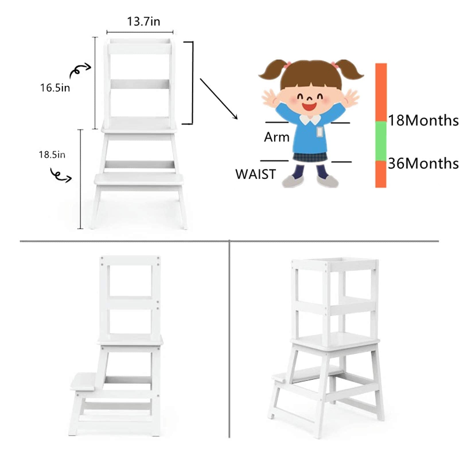 Taburete de cocina para niños y niños pequeños con barandilla de seguridad