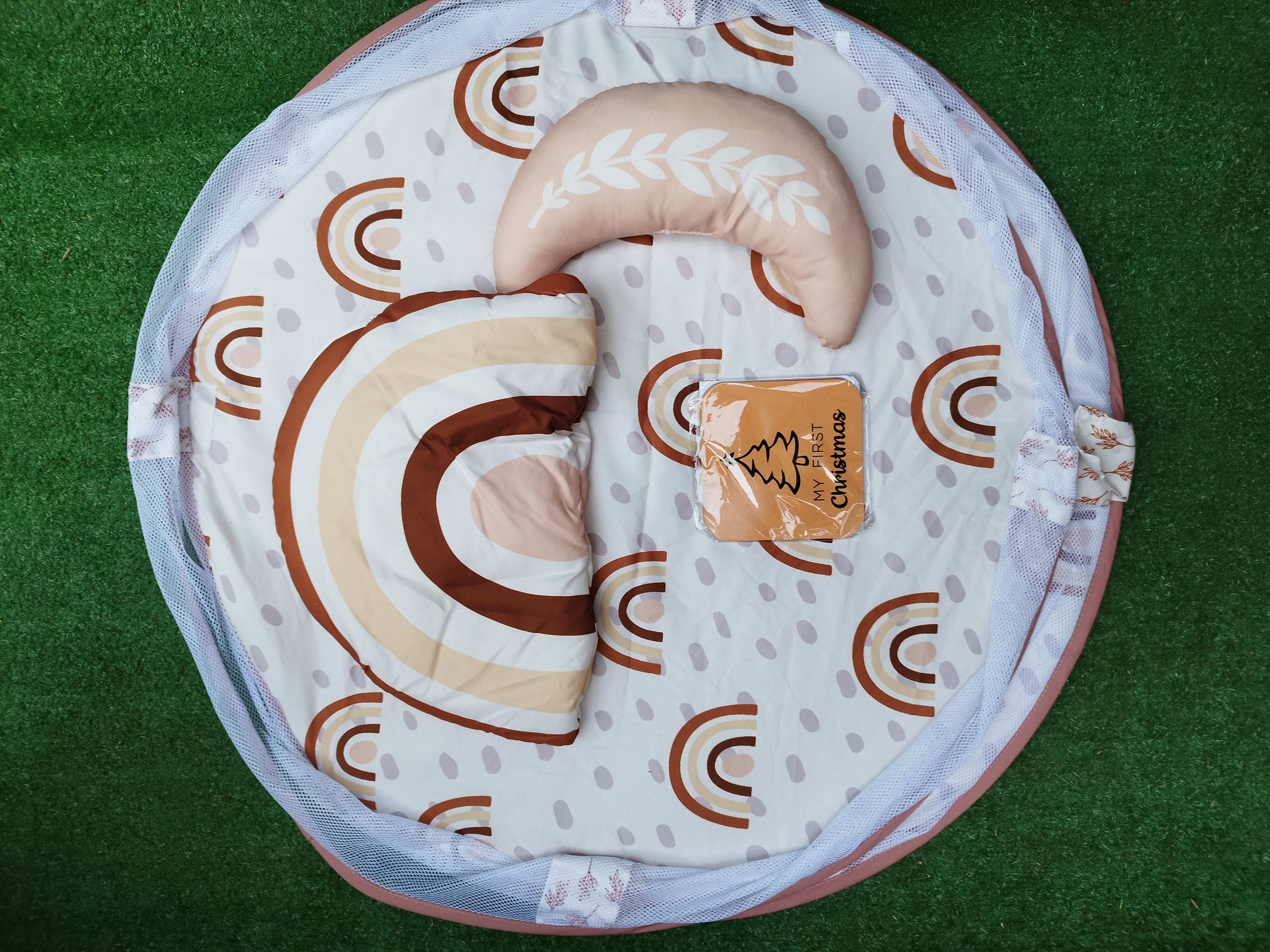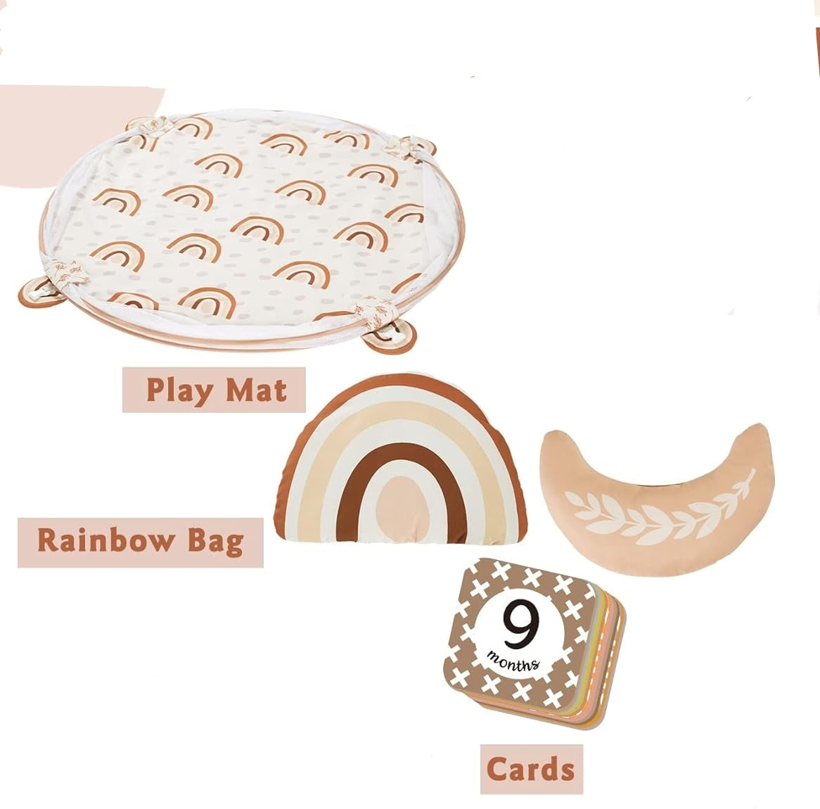 Tapete de actividades para bebés combinado con tarjetas de hitos