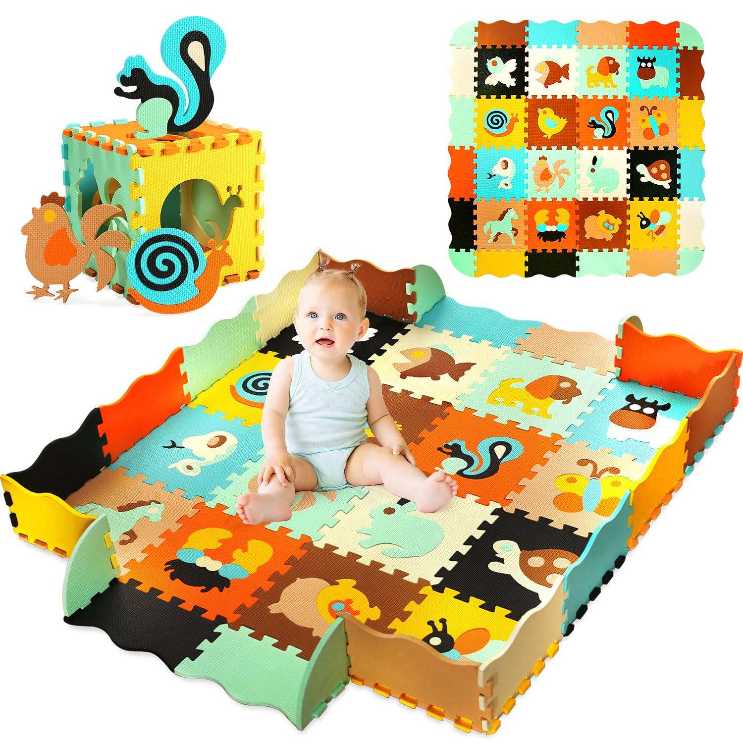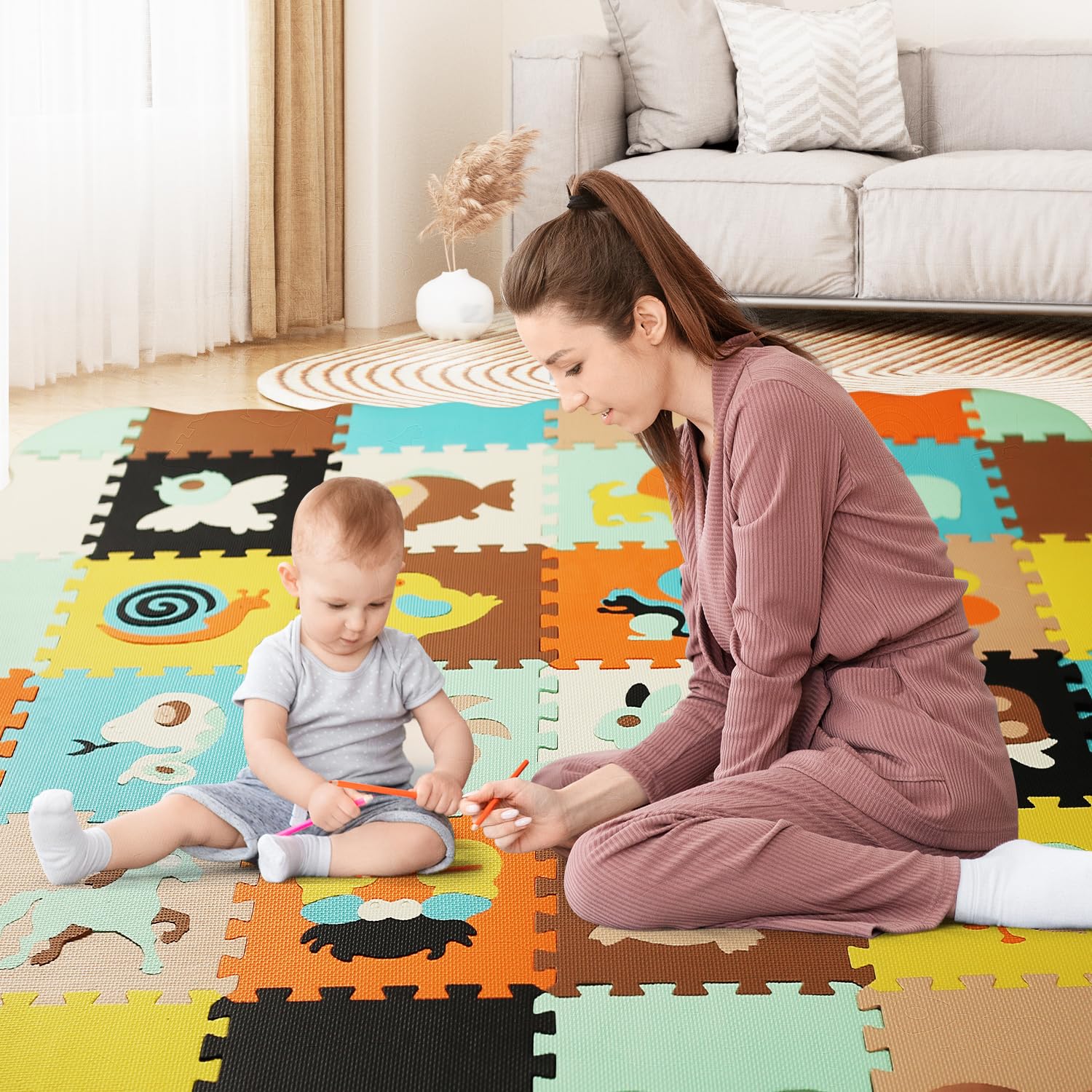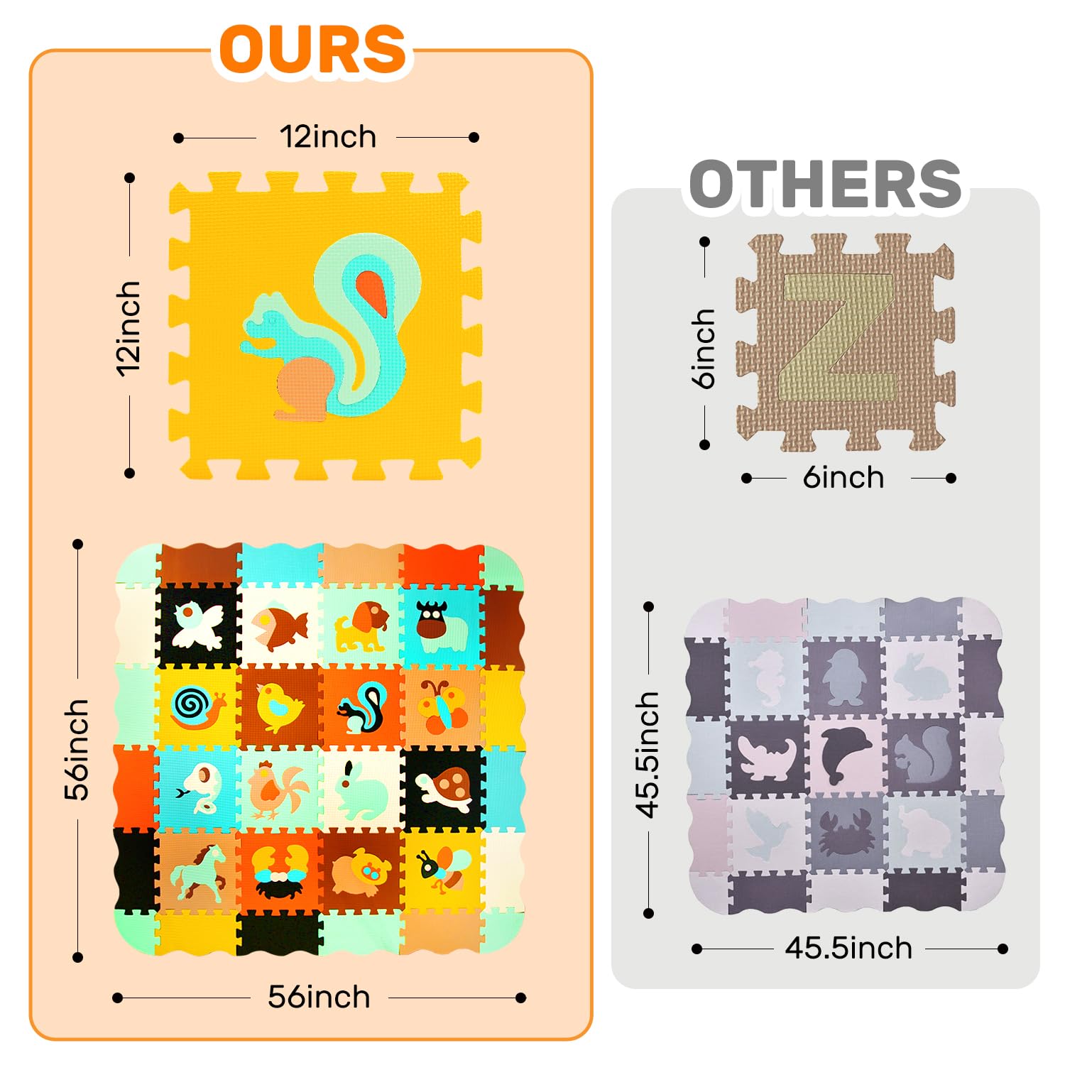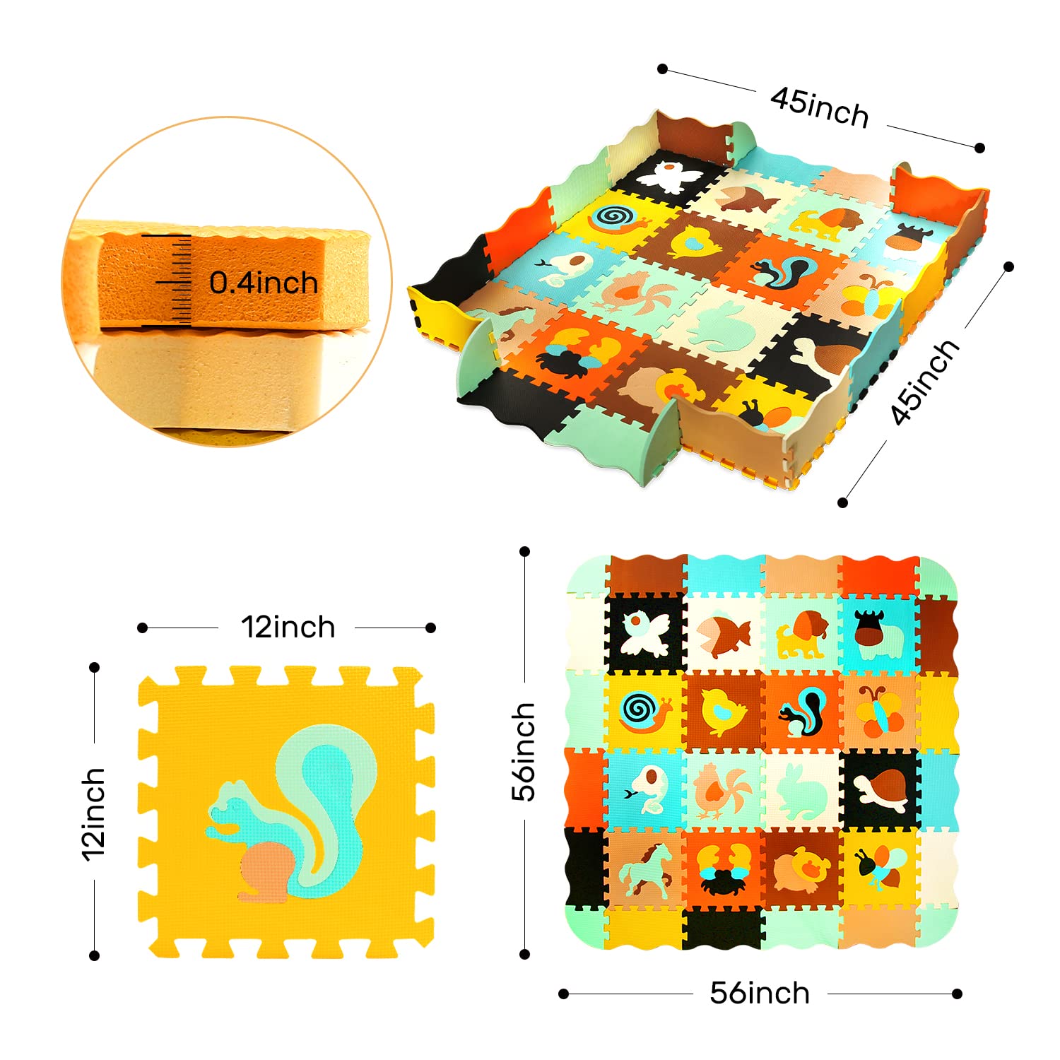 Tapete de juego de espuma para bebés de 56" x 56" con diseño de rompecabezas