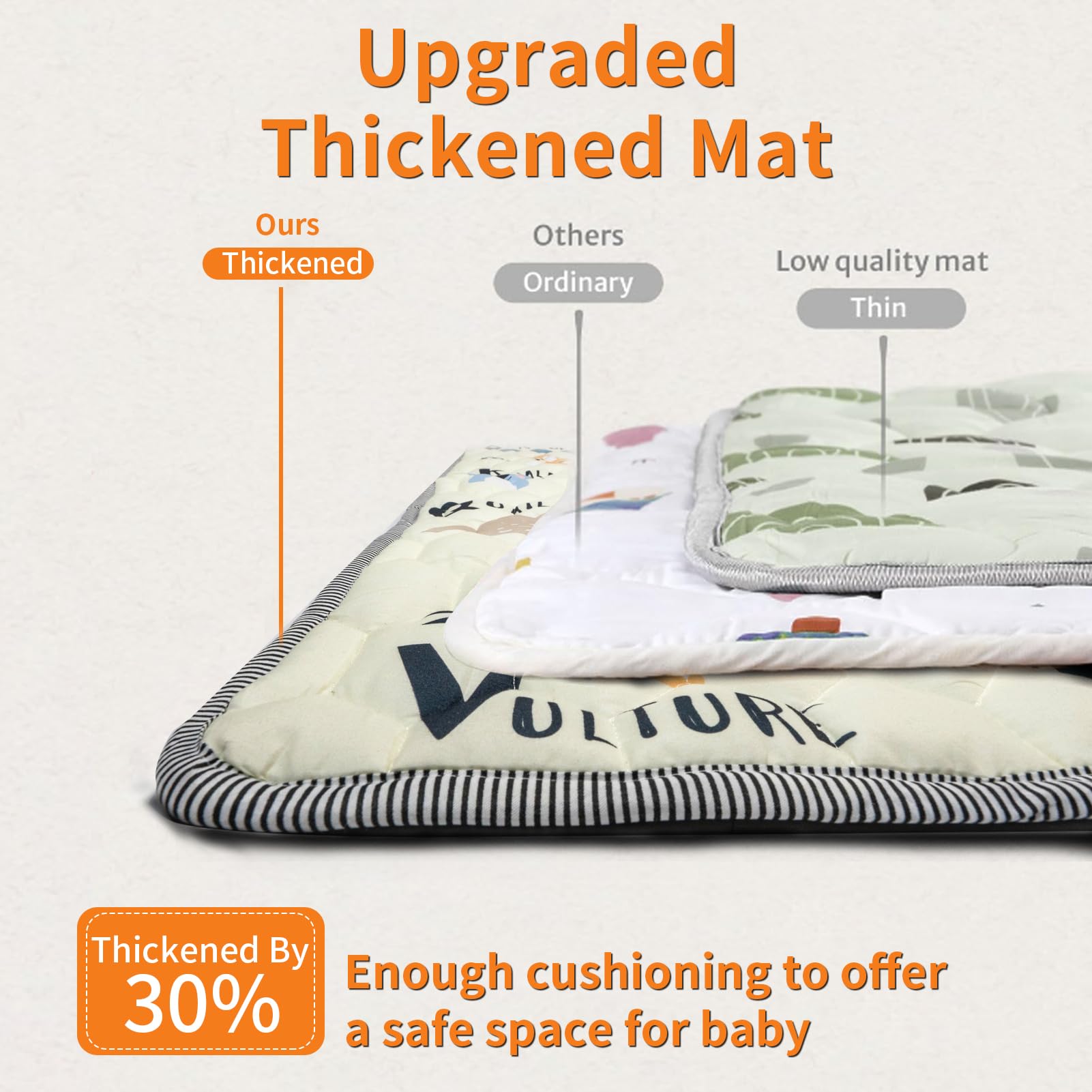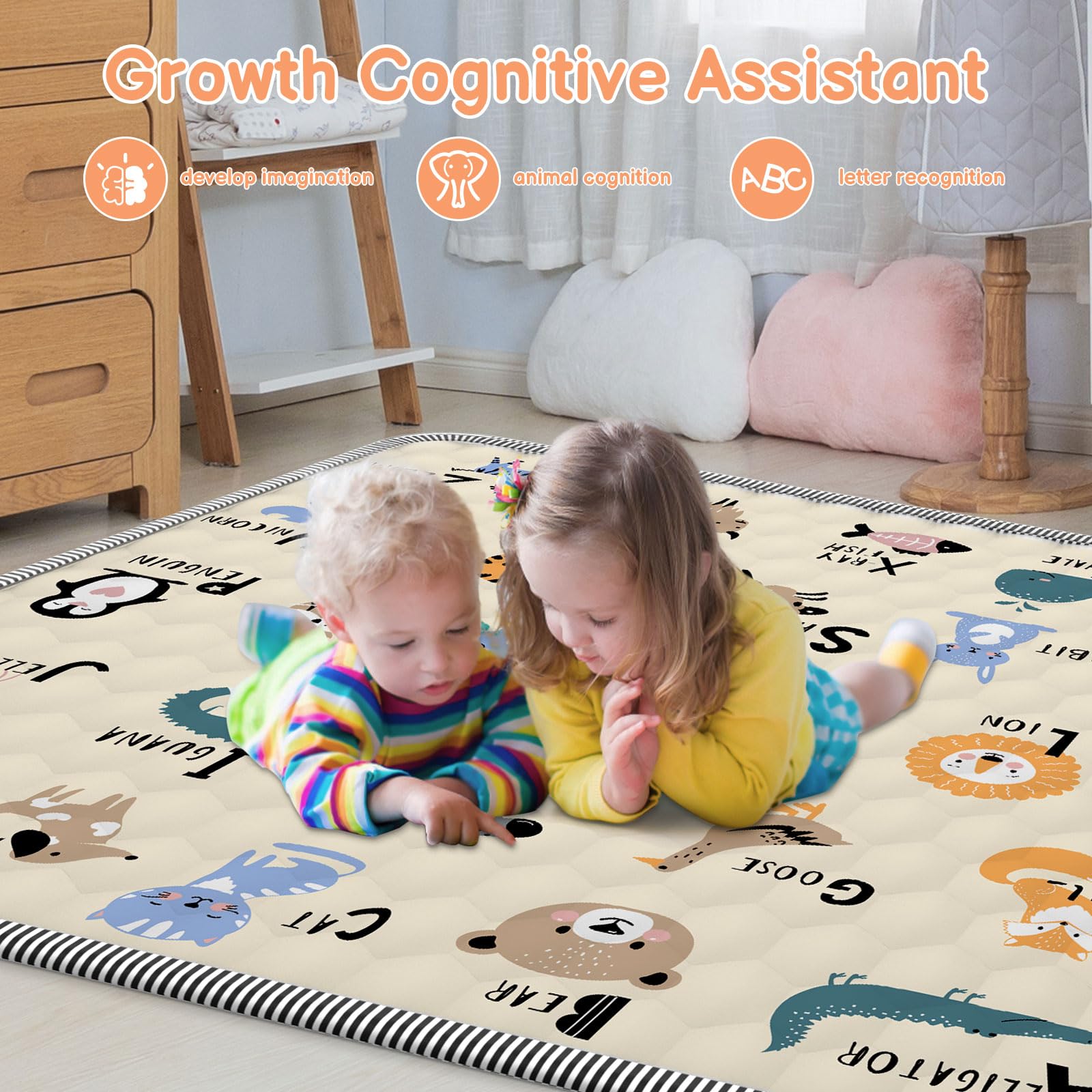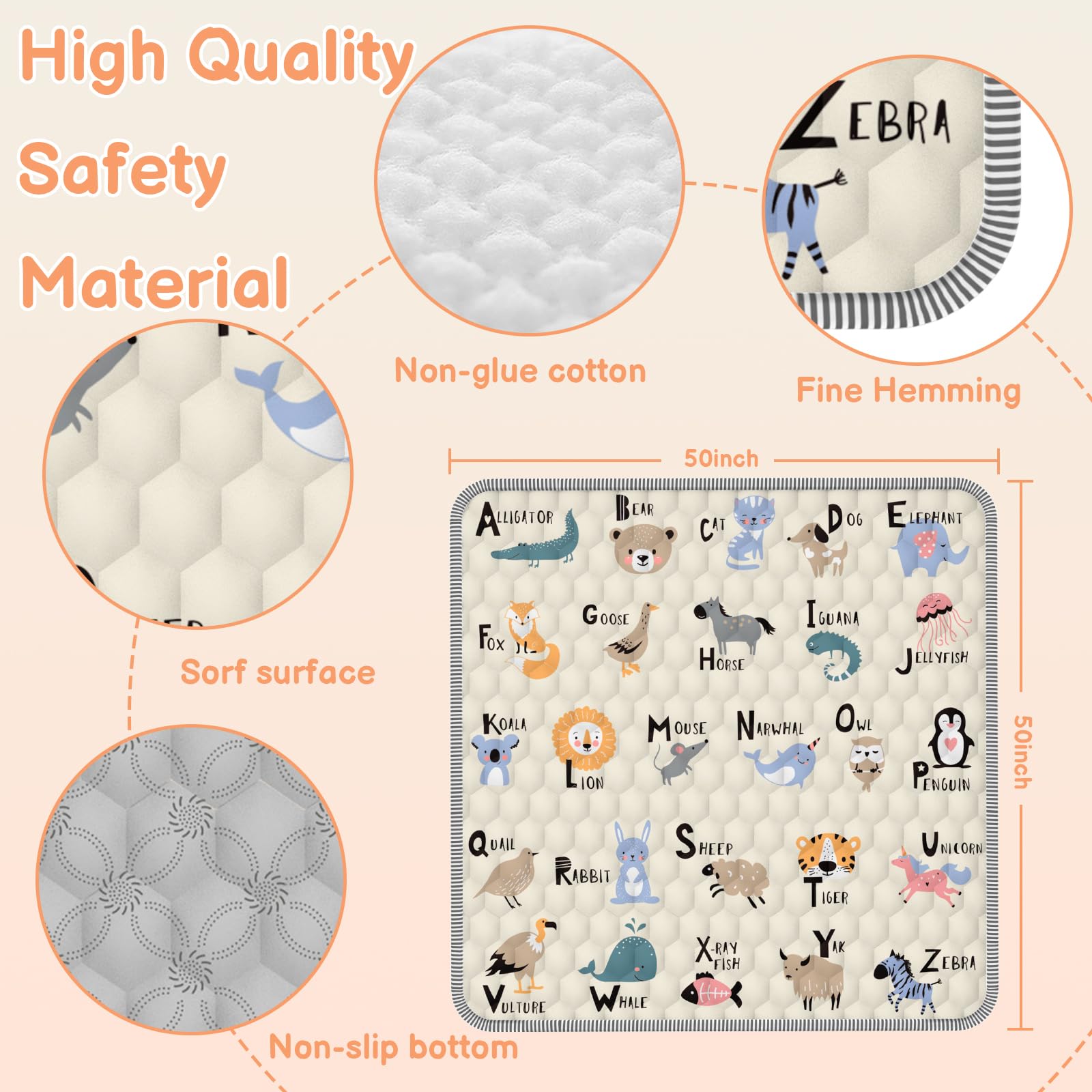 Tapete de juego para bebés de 50 x 50 pulgadas, relleno de algodón de alta calidad