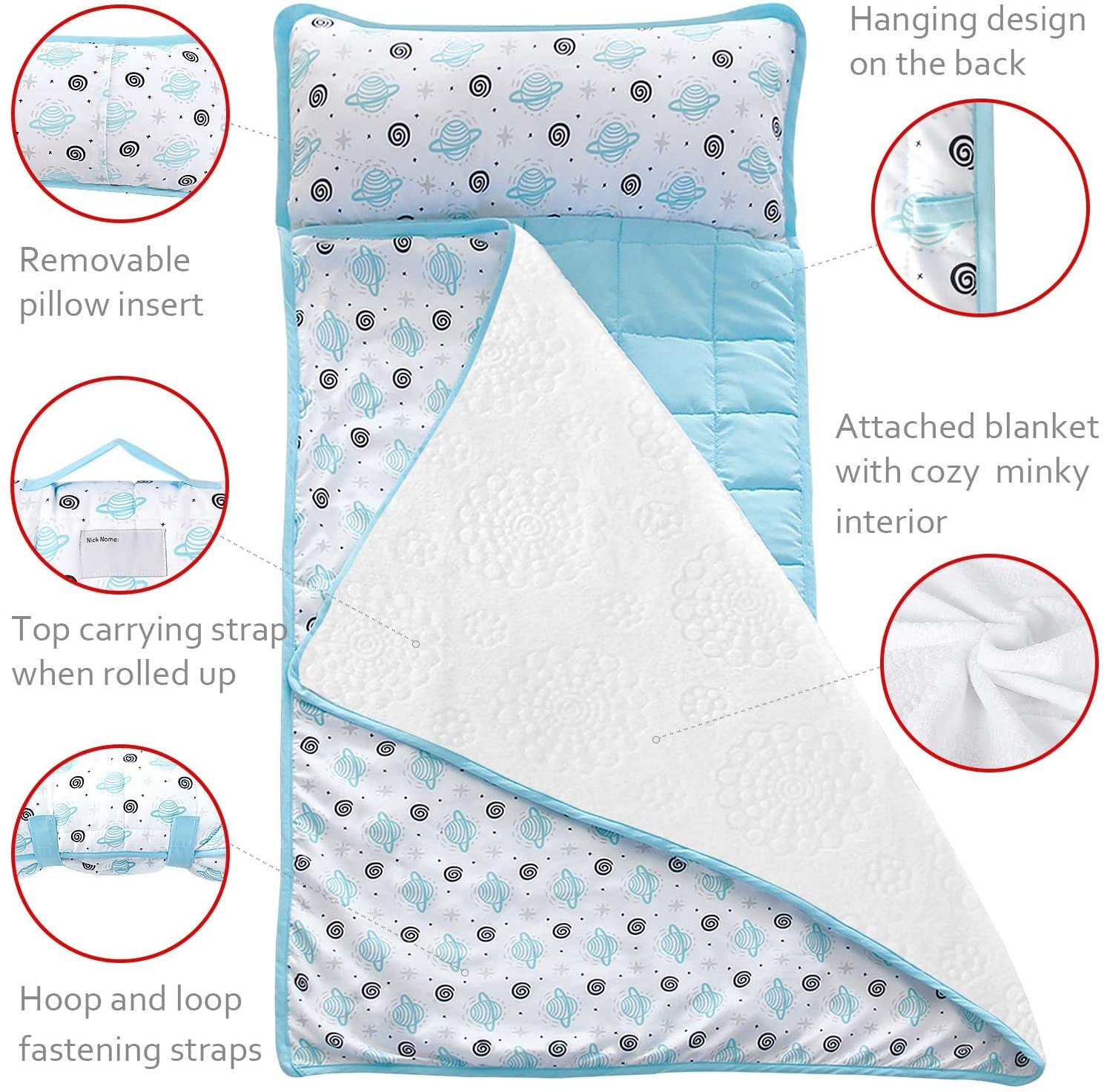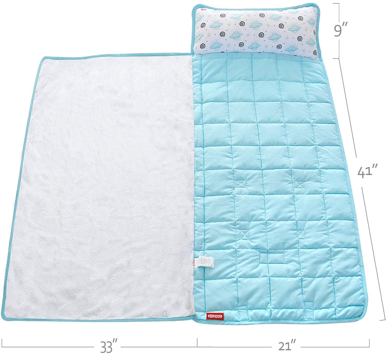 - Tamaño: Tamaño terminado de la sábana: 41 x 33 pulgadas, Tamaño terminado del tapete (incluyendo la almohada): 21 x 50 pulgadas. Tiene un tamaño perfecto diseñado para niños a partir de 2 años. Suave, acogedora y colorida, ya sea para kindergarden o guardería, este tapete para siesta se convertirá en el compañero perfecto para tus hijos.