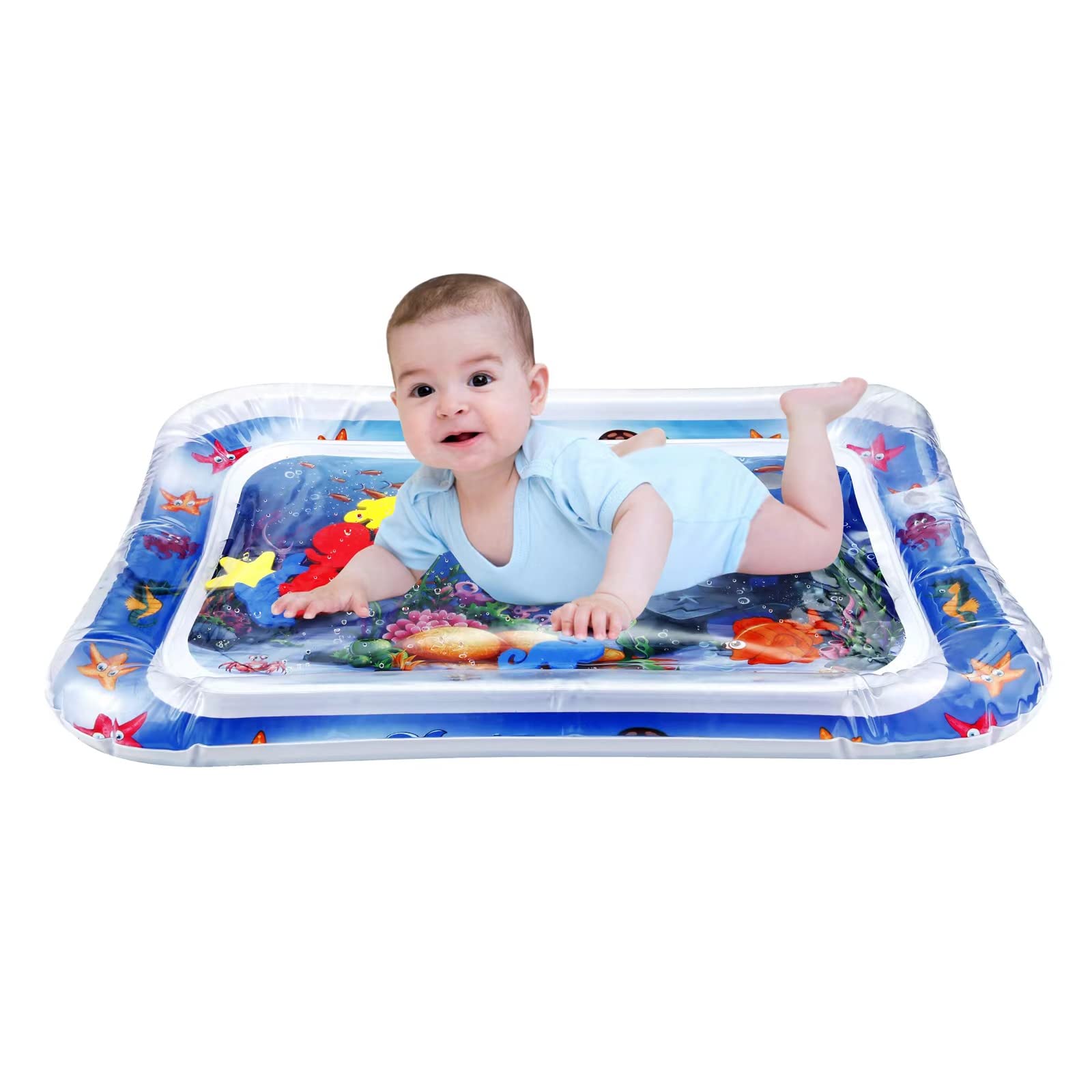 - Tamaño perfecto: nuestras alfombrillas de juego de agua para bebé miden 26 x 20 pulgadas con 2.5 pulgadas de delgado. Con suficiente espacio de entretenimiento para bebés de 3 meses en adelante, a tu pequeño le encantará esta nueva zona de juego.