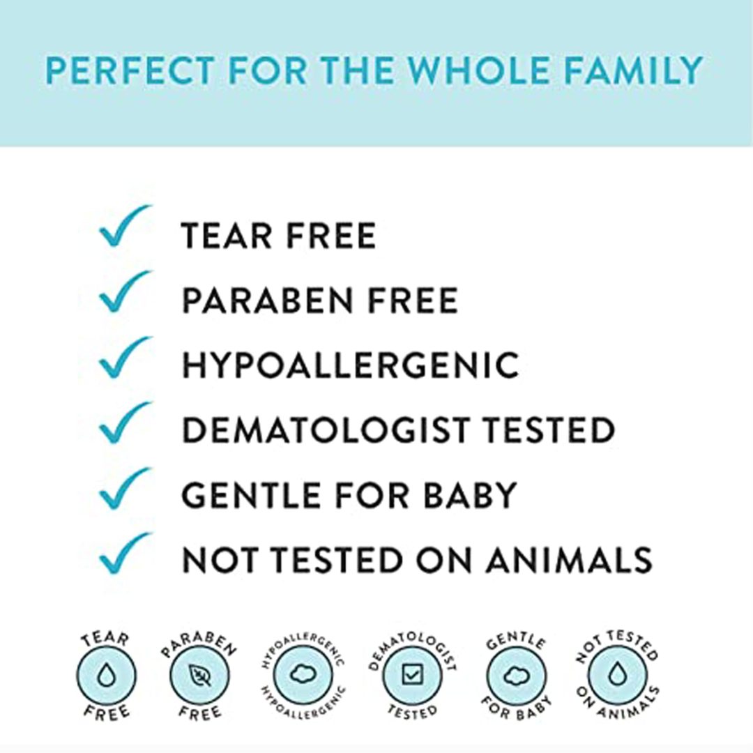 Aceites esenciales de lavanda: el aceite esencial de lavanda supercalmante calma y relaja, lo que hace que sea el complemento perfecto para tu rutina de baño de bebé; la manzanilla orgánica y la caléndula nutren suavemente la piel; la proteína de jojoba y el extracto de quinoa ayudan a enriquecer la delicada piel de los bebés