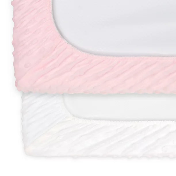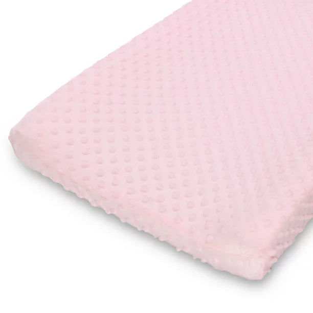 El juego de 2 fundas para cambiador Peanutshell Minky Dot para bebé niña viene en tonos clásicos de rosa dulce y blanco nítido. Hechas 100 % de microfibra de poliéster, estas fundas para cambiador serán el complemento perfecto para la habitación de tu pequeño. El juego incluye: paquete de 2 fundas para cambiador de bebé. Con elástico alrededor para un ajuste seguro y ceñido. Nuestras fundas para cambiadores de 16" x 32" x 5" están diseñadas para adaptarse a casi todos los cambiadores estándar. Cada pieza está hecha de microfibra 100% poliéster suave y afelpada, suave contra la delicada piel del bebé.