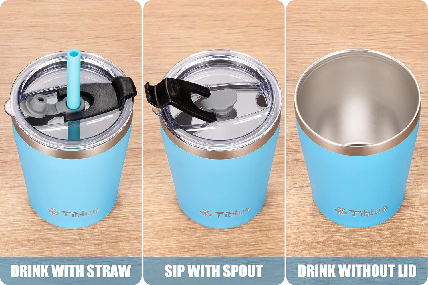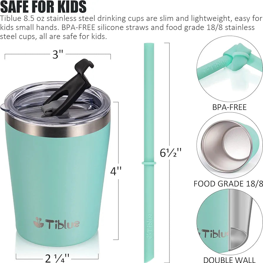 Materiales seguros para niños: el juego de tazas aisladas Tiblue para niños pequeños está hecho de acero inoxidable 18/8 de grado alimenticio, sin tóxicos, las pajitas adoptan silicona suave y las tapas a prueba de derrames están hechas de material plástico duradero sin BPA. Estas tazas para beber a prueba de óxido y totalmente aptas para alimentos están revestidas con un acabado duradero, incluyendo 2 tazas de acero inoxidable para niños, 2 tapas a prueba de fugas, 2 pajitas de silicona con tapón, 1 cepillo para polvo de limpieza de pajita, perfecto para ayudar a tu pequeño a beber por su cuenta sin derrames ni ensuciar