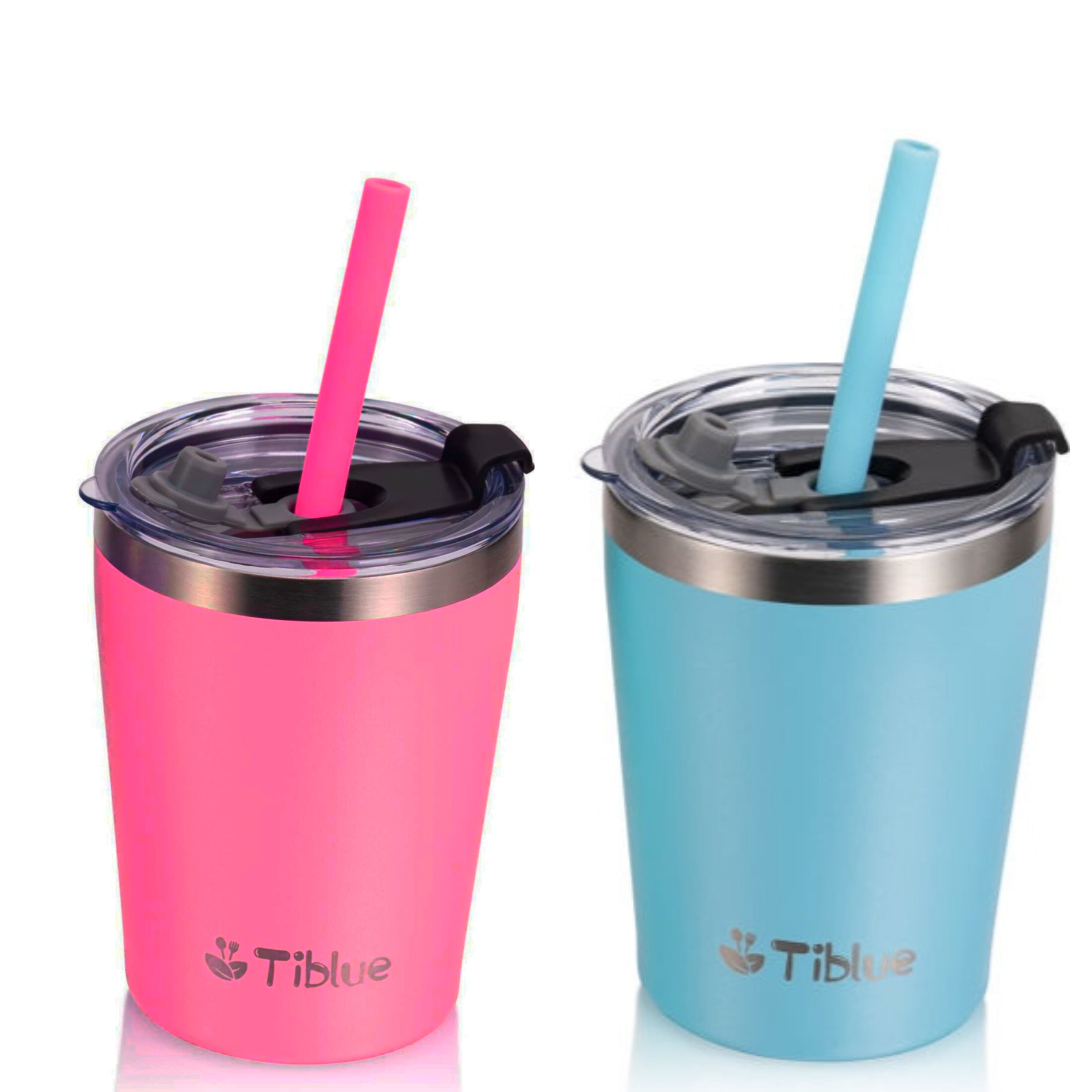 Tiblue - Set de 2 tazas para niños de acero inoxidable de 8 oz (fucsia/turquesa)