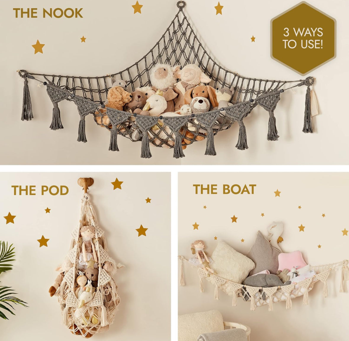 TIDYTEDS- Hamaca Stuffy para almacenamiento de animales de peluche, macramé