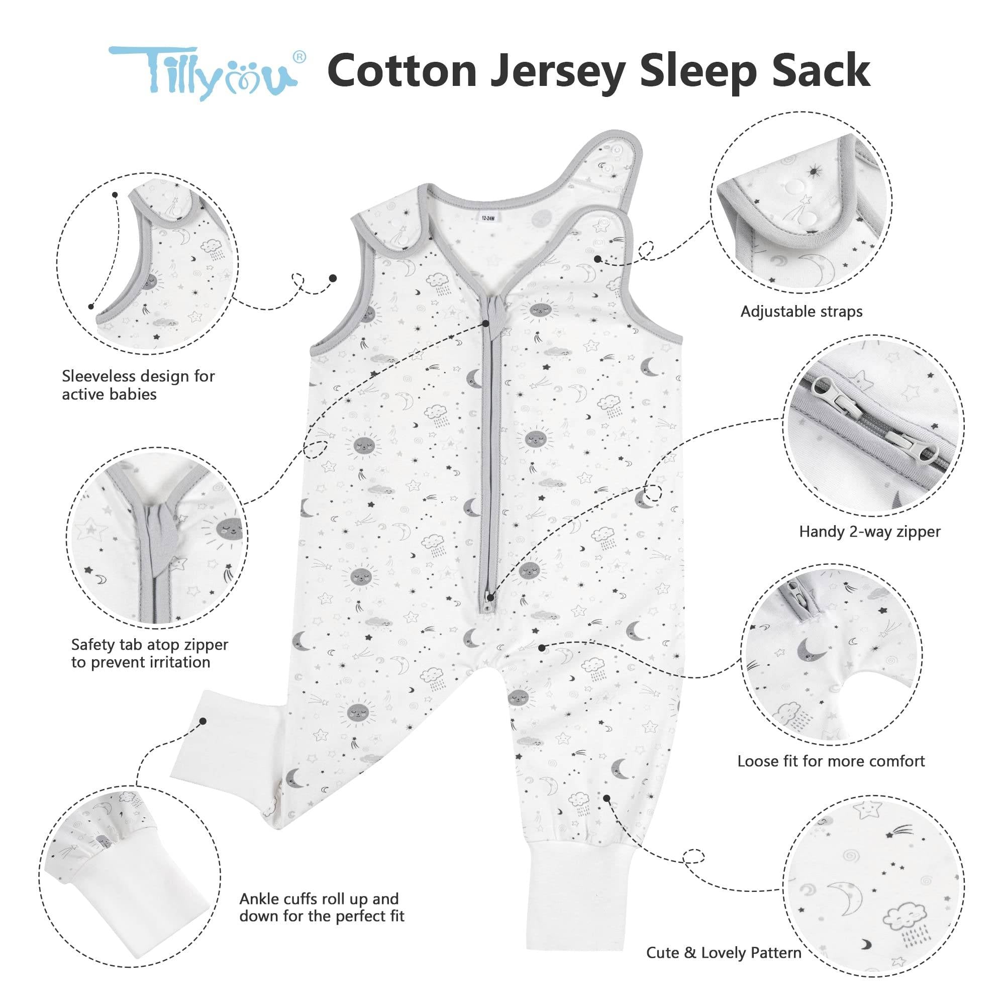 TILLYOU Saco de dormir, 100 % algodópara 2 años