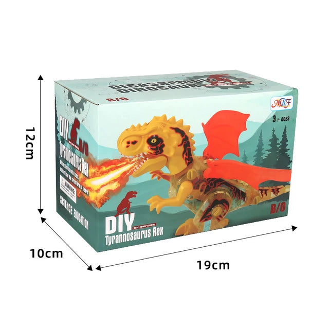Tiranosaurio Rex de plástico transparente para ensamblar,con luces y engranajes