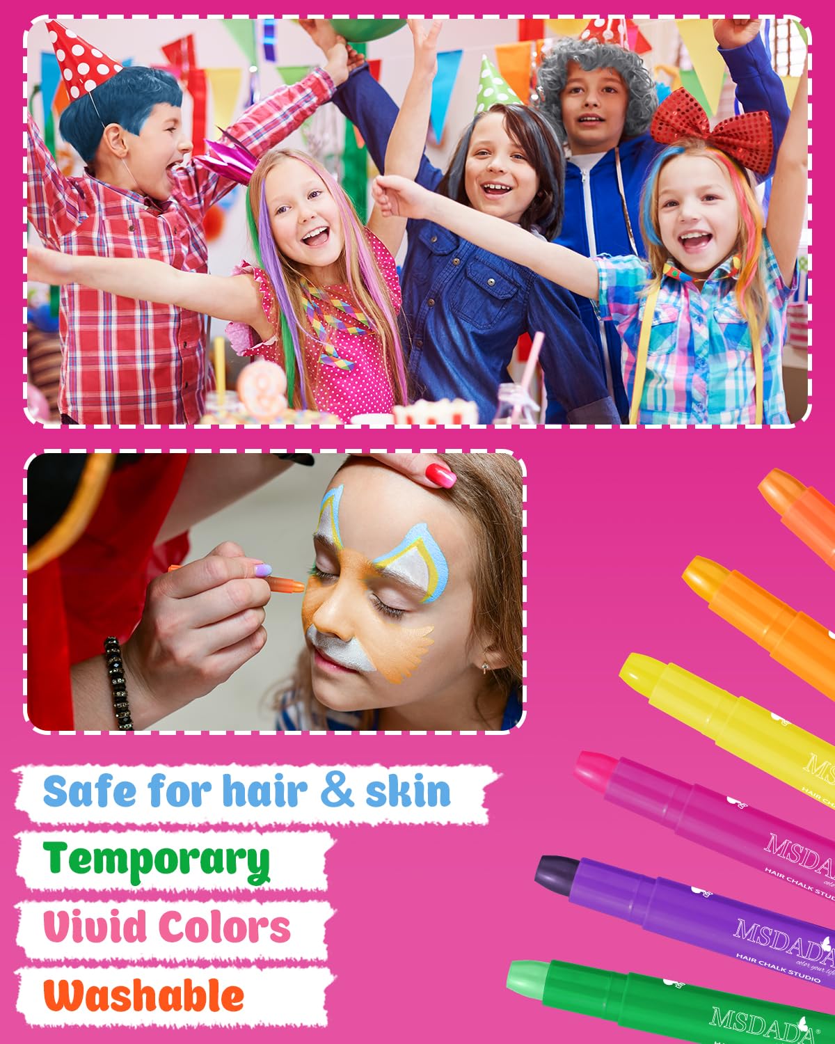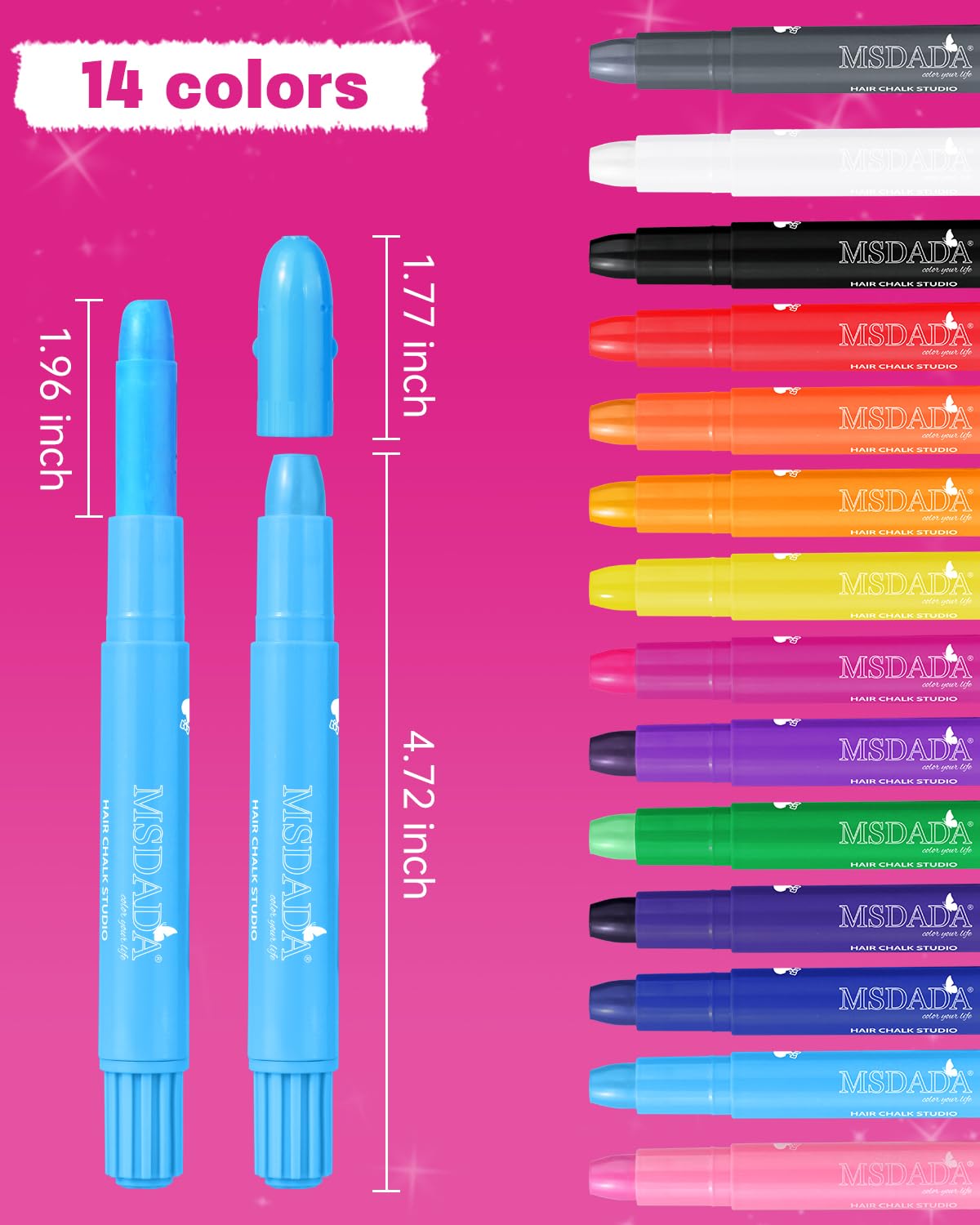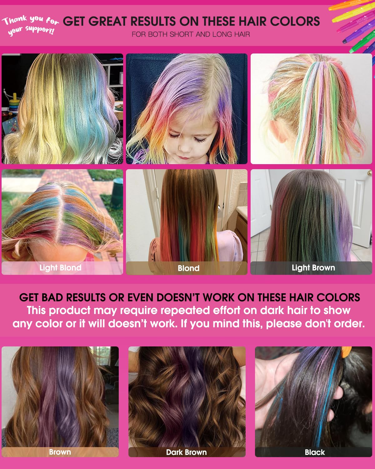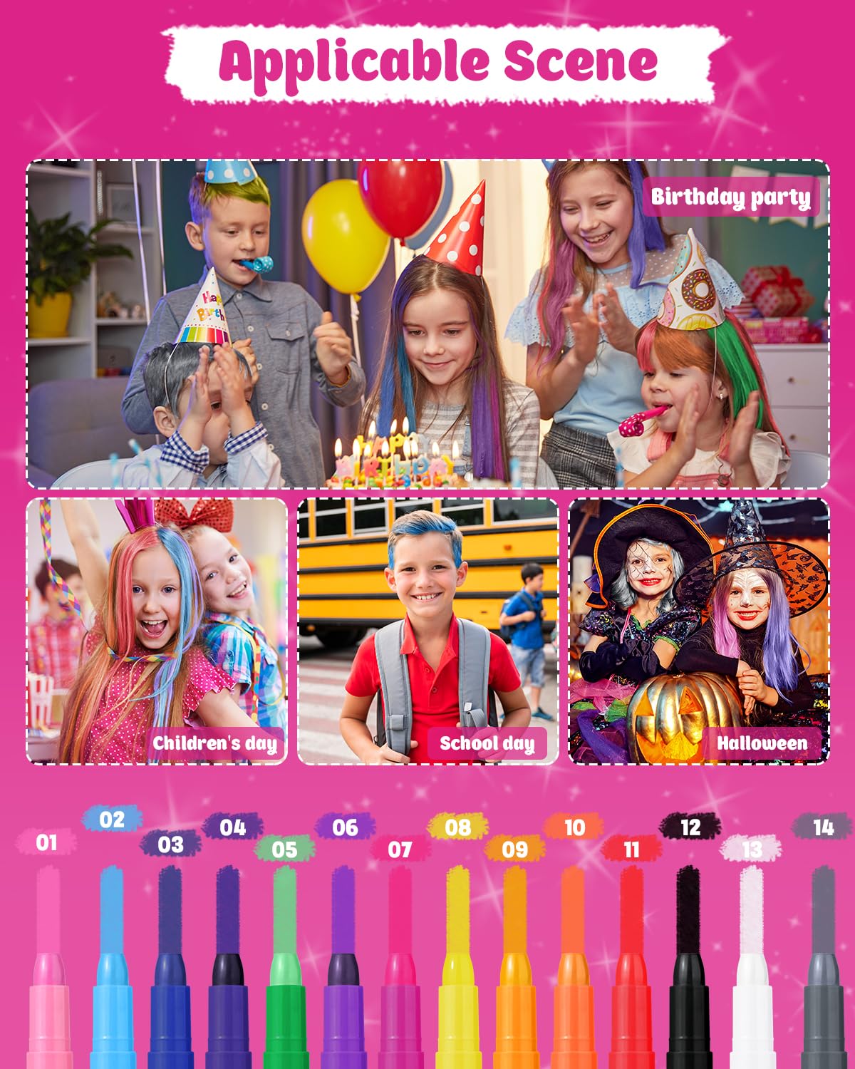 Tiza para el cabello para niñas y niños, 14 colores temporales