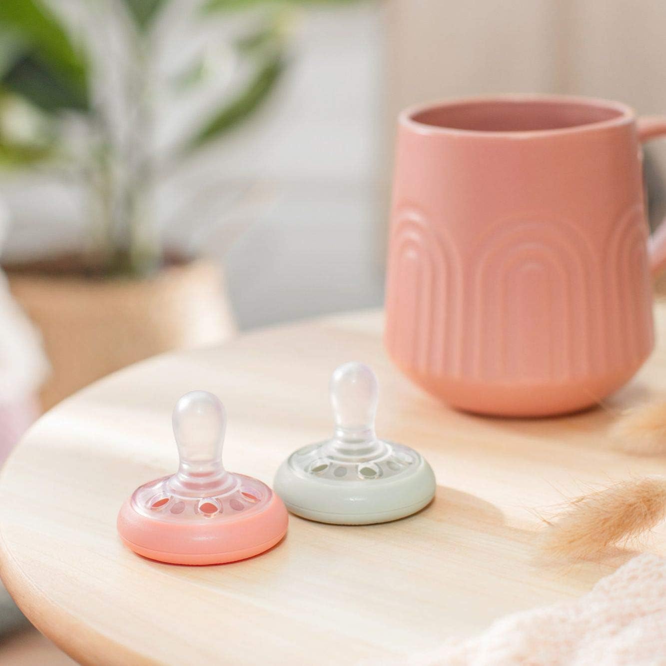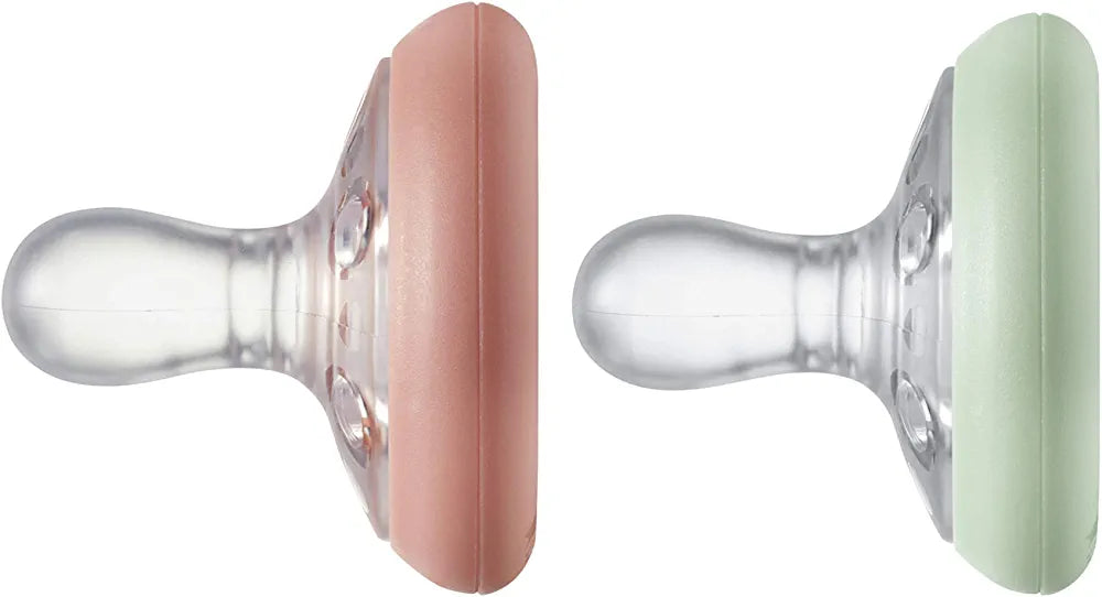 Diseño simétrico: nuestro chupete similar a un seno presenta una tetina de silicona simétrica y sin el lado "incorrecto" hacia arriba, siempre se colocará correctamente en la boca del bebé.