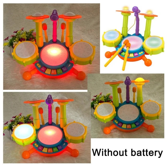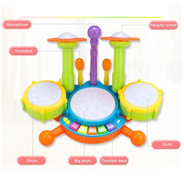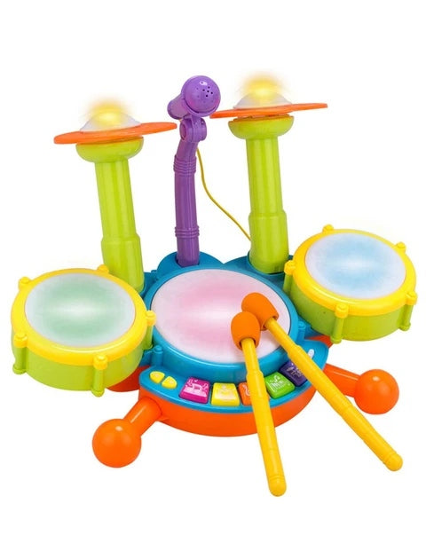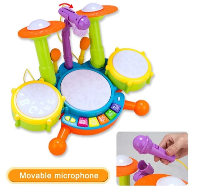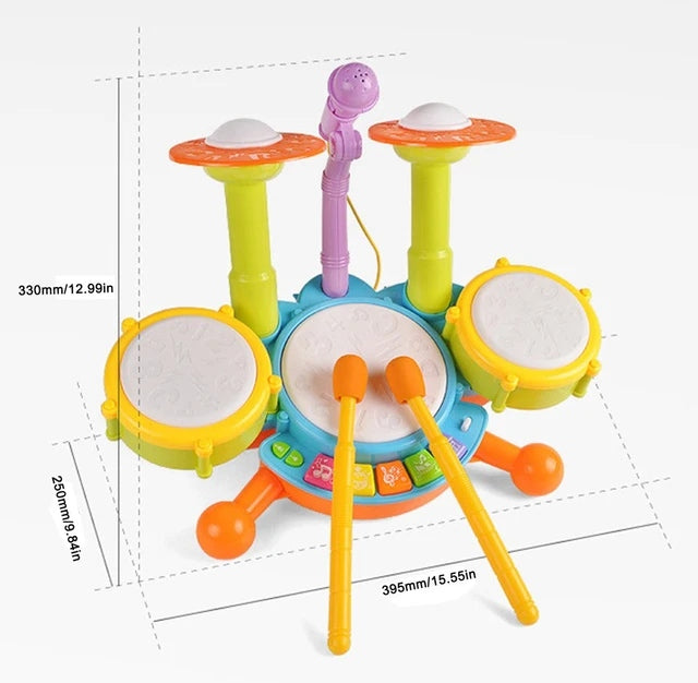 TONZE-Set de batería de juguete con palillos de tambor micrófono
