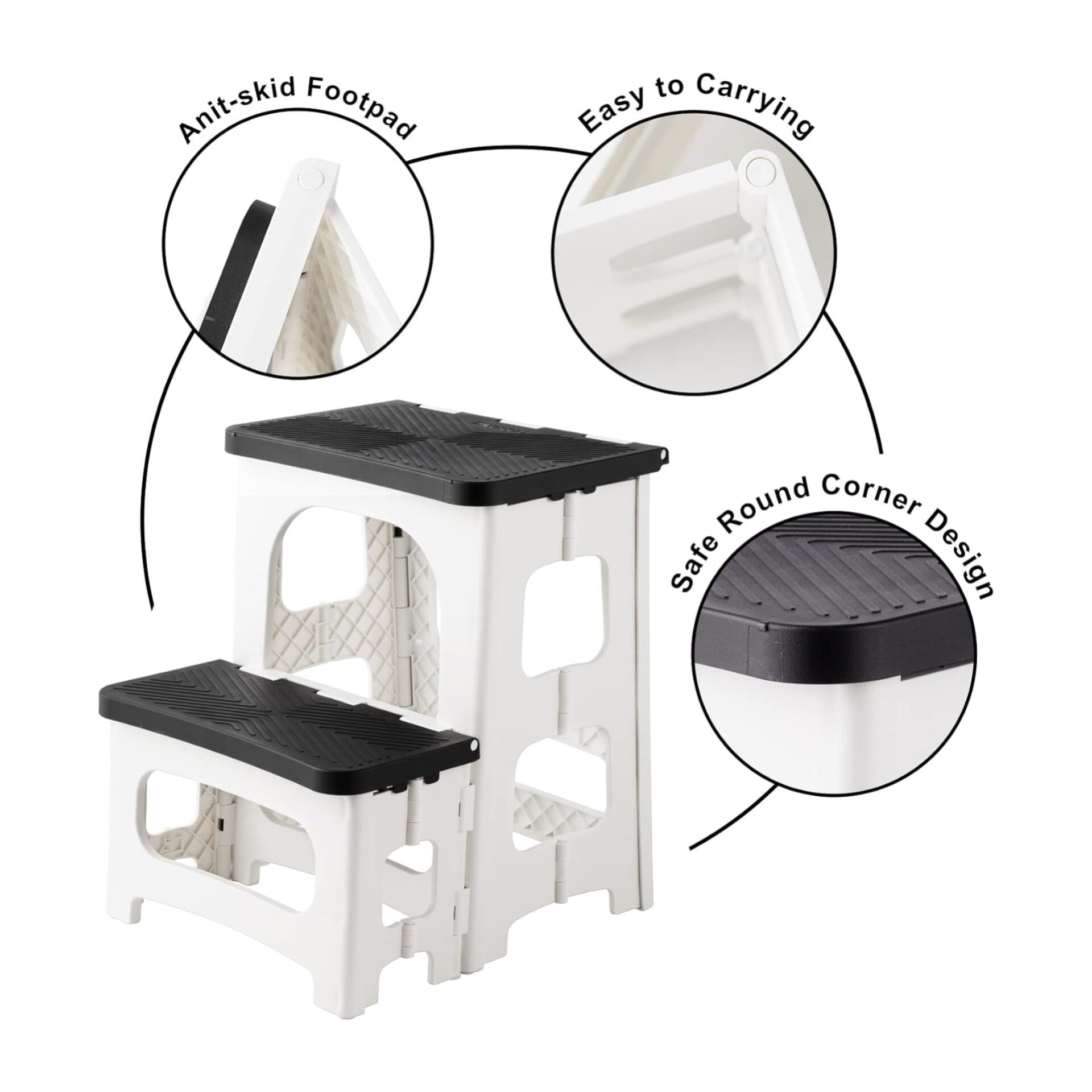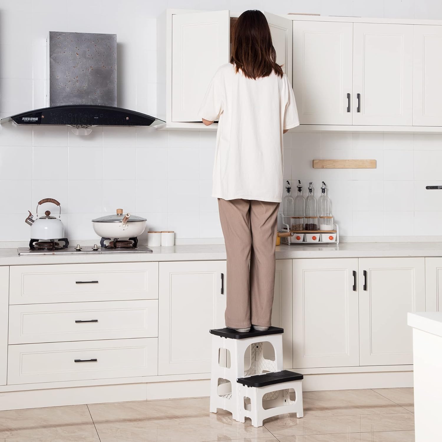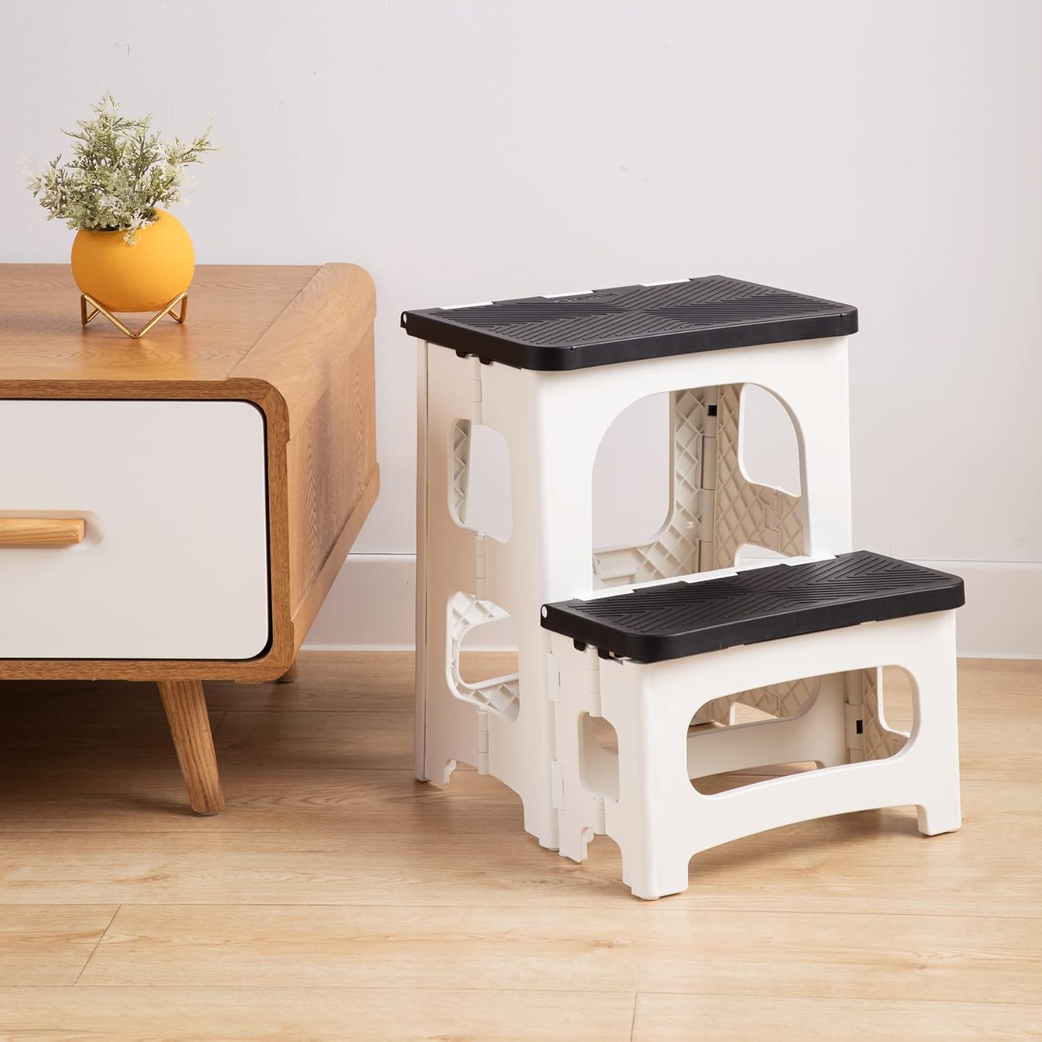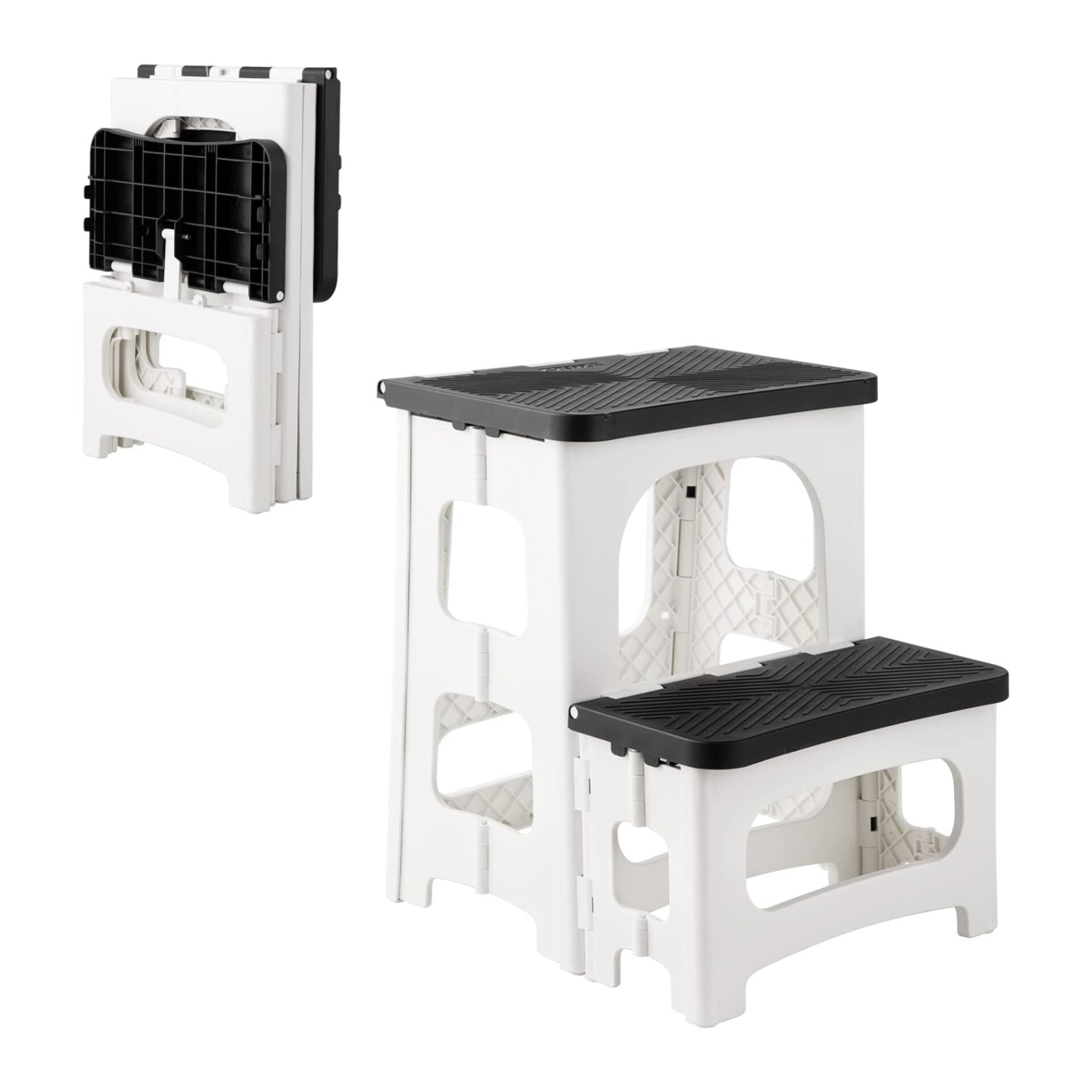 Topfun-Taburete color blanco plegable de 2 escalones de 8" y 17"