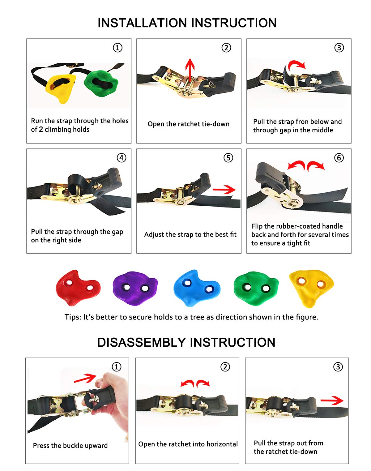 Topnew - 12 piquetas para escalada de árbol ninja para niños