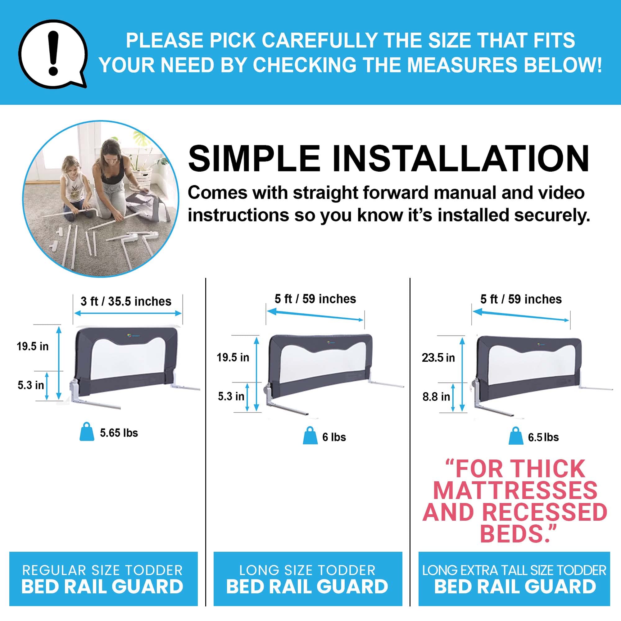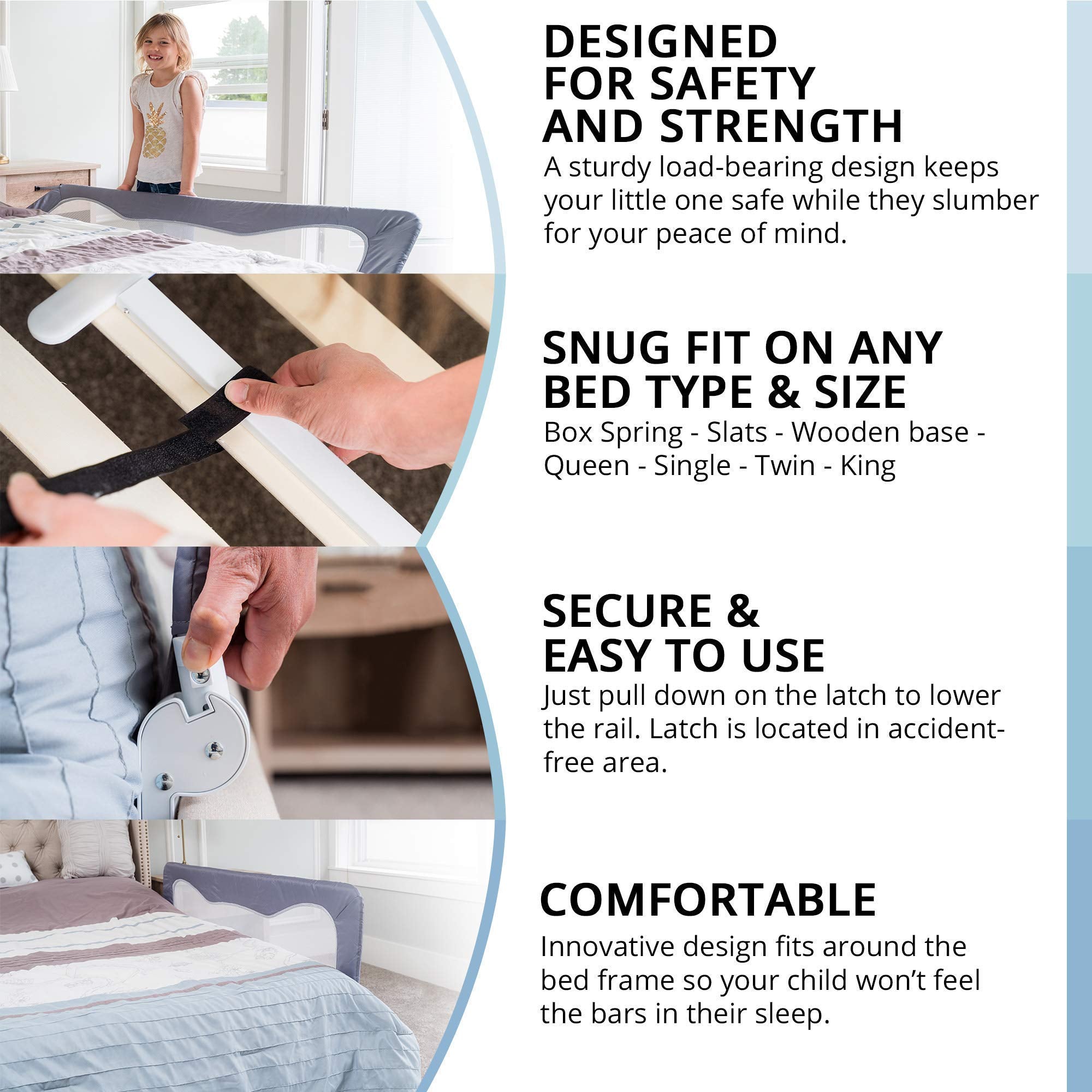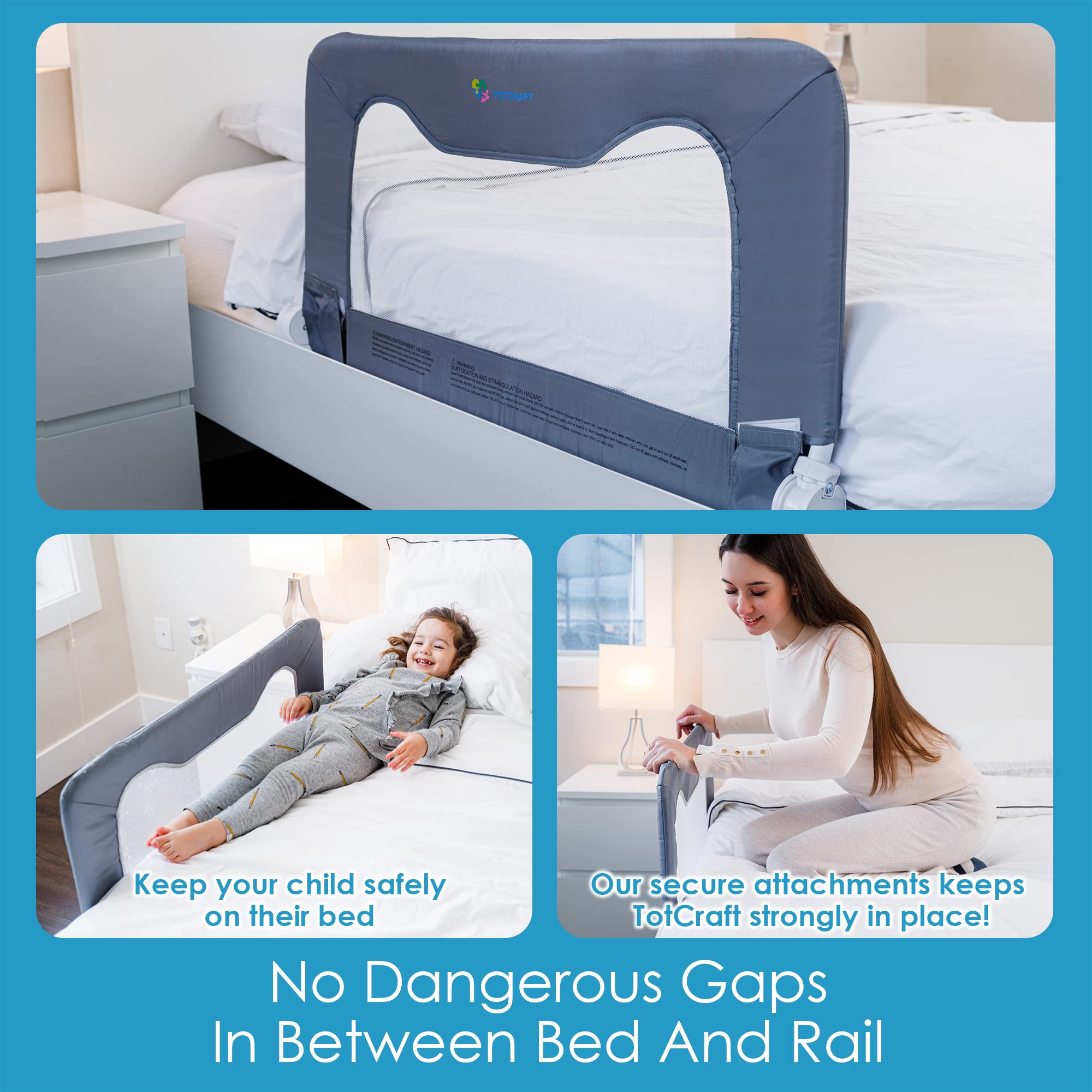 Totcraft baranda protectora de cama para colchones y camas Queen, King, matrimonial e individual para niños