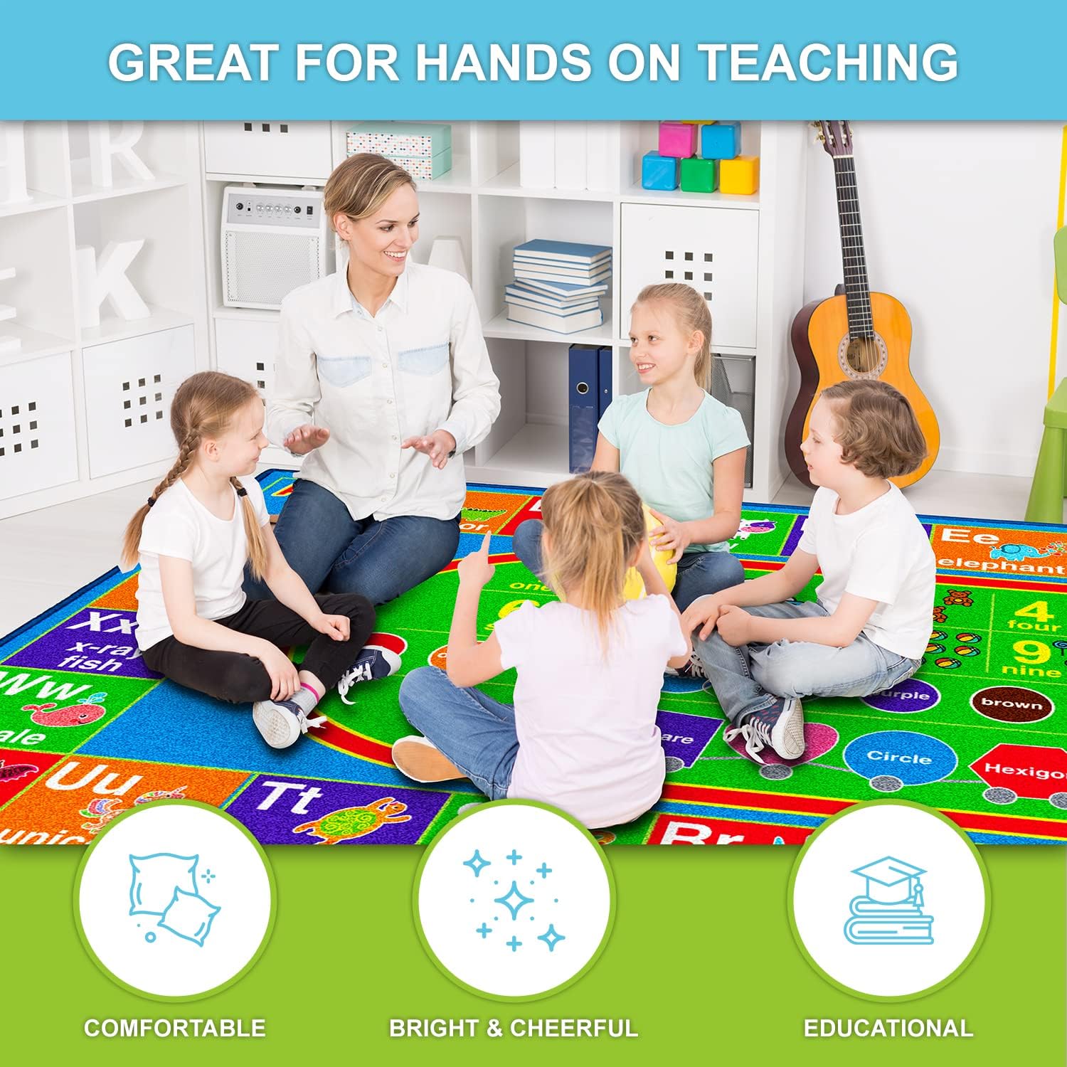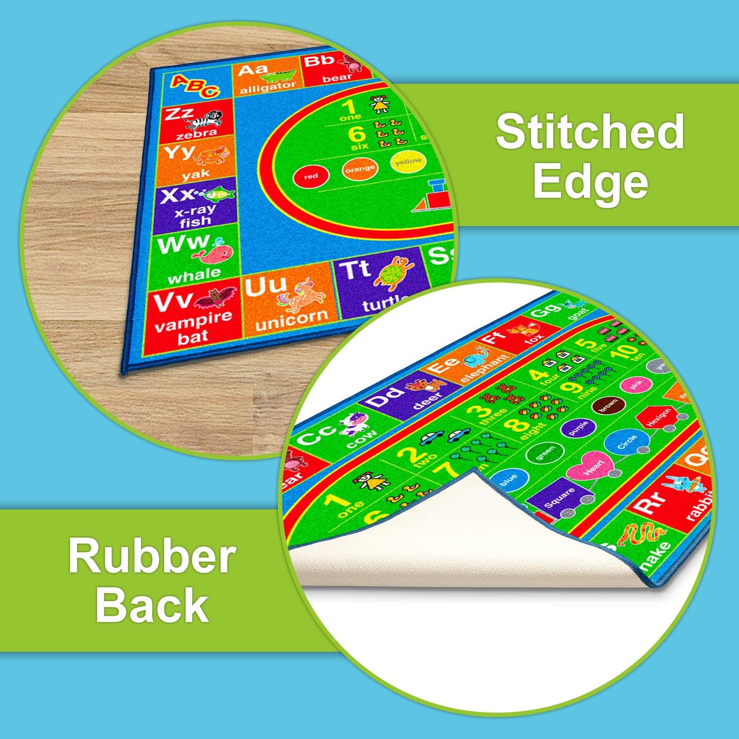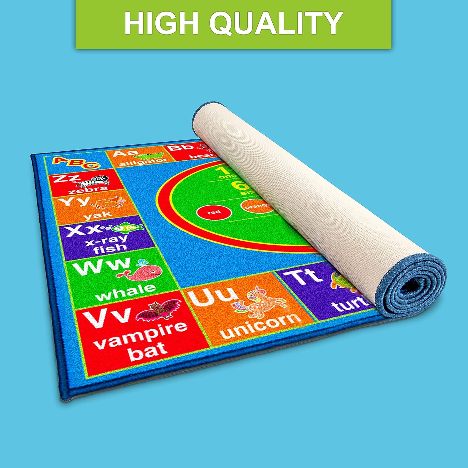Alfombra de juego educativa grande: la alfombra de juegos para la sala de juegos de los niños mide 60 x 30 pulgadas, fomentando una gran área para gatear, moverse o jugar. La alfombra portátil ABC se puede plegar, empacar y llevar a cualquier lugar que la necesites, sin arrugas, ocupando un espacio mínimo.