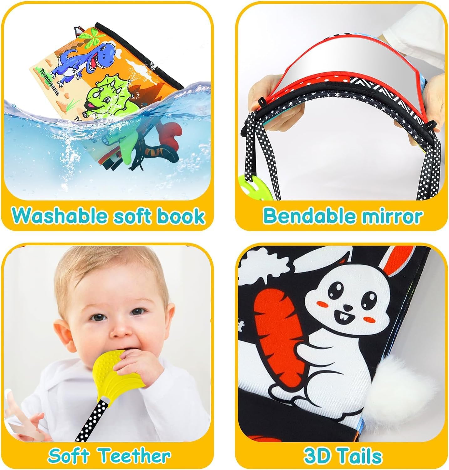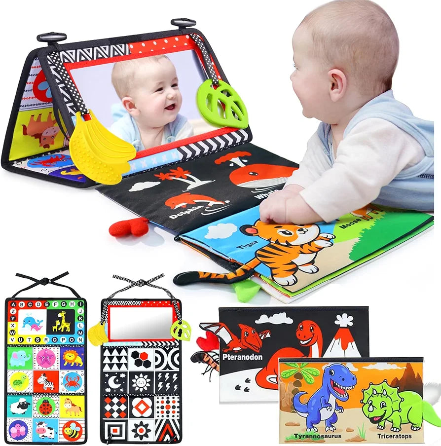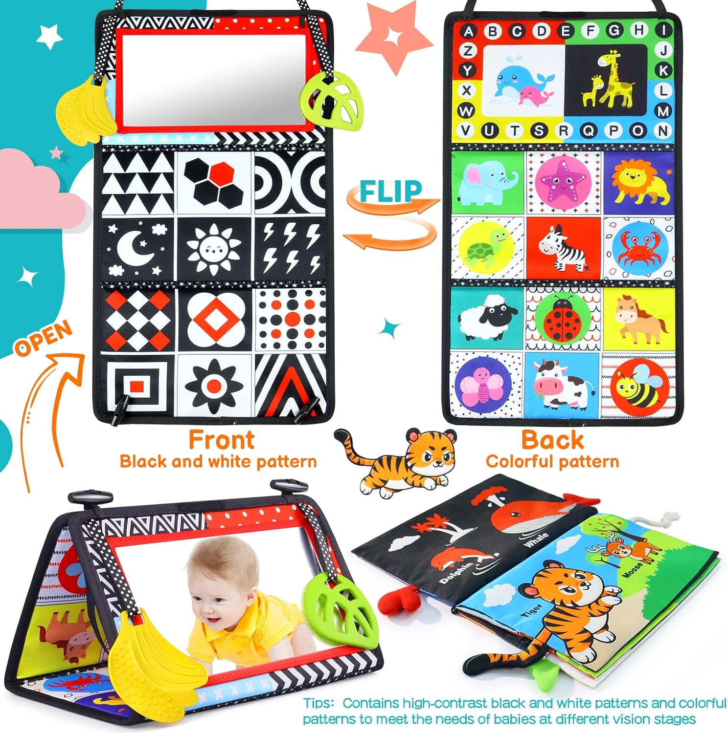 Juguetes para el desarrollo del recién nacido: El mundo que ven los bebés recién nacidos es blanco y negro, difuso, y gradualmente se convierte en claro y colorido. Nuestros juguetes de espejo para bebé contienen patrones en blanco y negro de alto contraste y patrones coloridos, que se adaptan a las necesidades de los bebés en diferentes etapas de visión. Ayude a su bebé a desarrollar sensibilidad al color y al contorno desde una edad temprana.