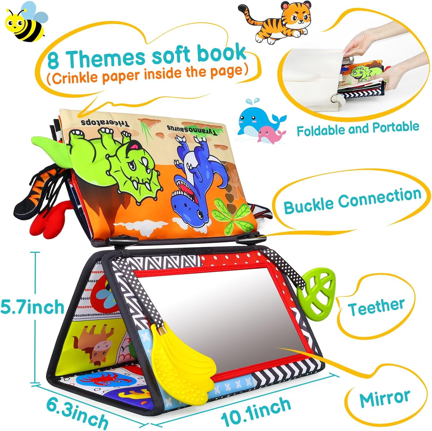 Interesantes juguetes de espejo y dentición: A los bebés recién nacidos les gusta mirar al espejo y están llenos de curiosidad por el mundo. Nuestros juguetes de espejo de tiempo boca abajo están hechos de materiales suaves y no tóxicos que son seguros para que tu bebé juegue. El espejo es irrompible y hay mordedores incluidos para mayor diversión.