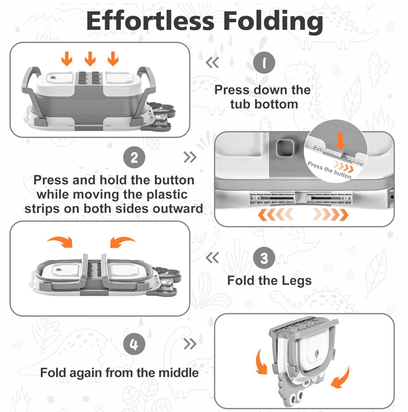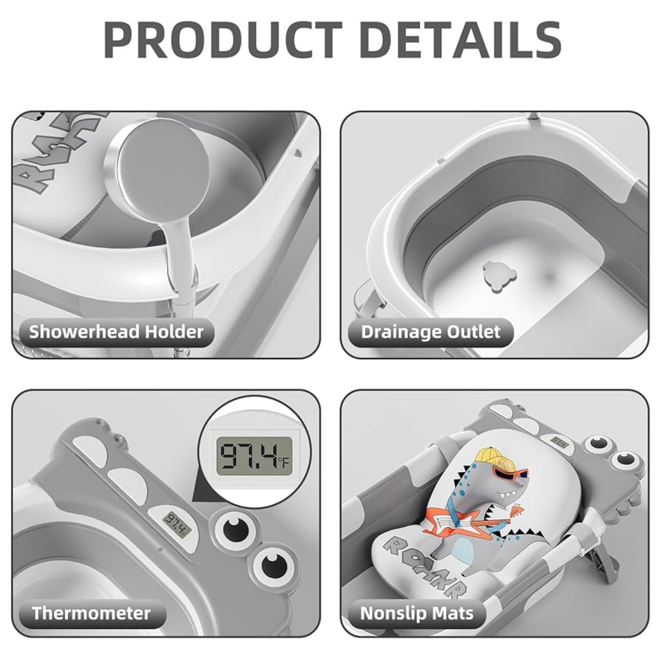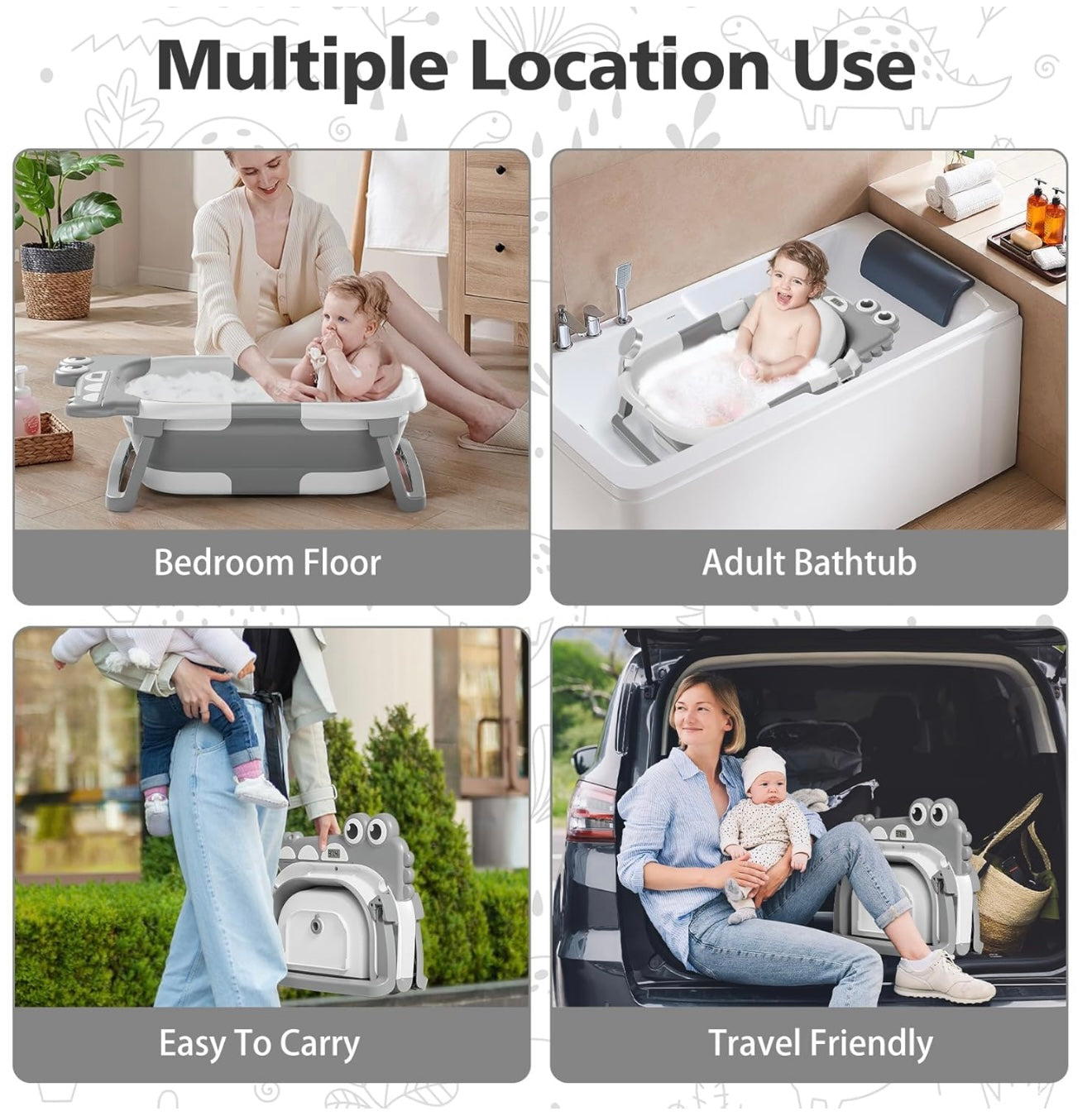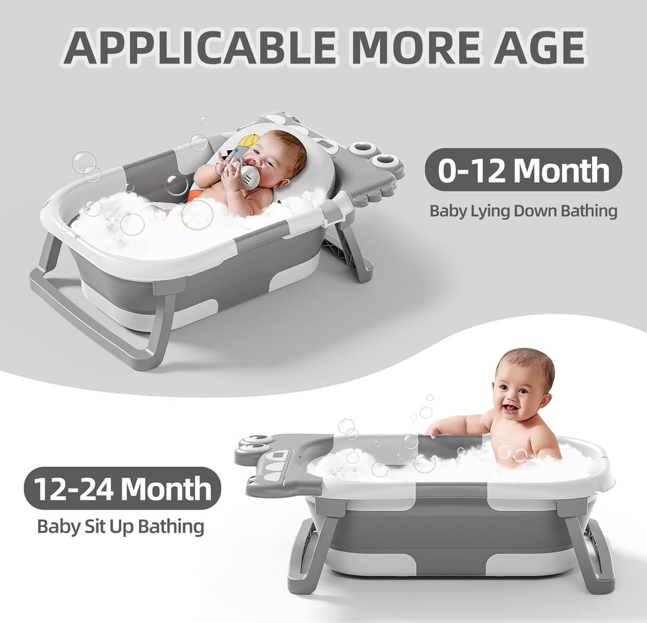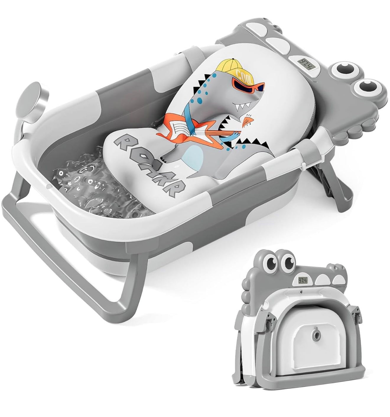 TPN - Bañera plegable para bebés con cojín suave y termómetro en tiempo real