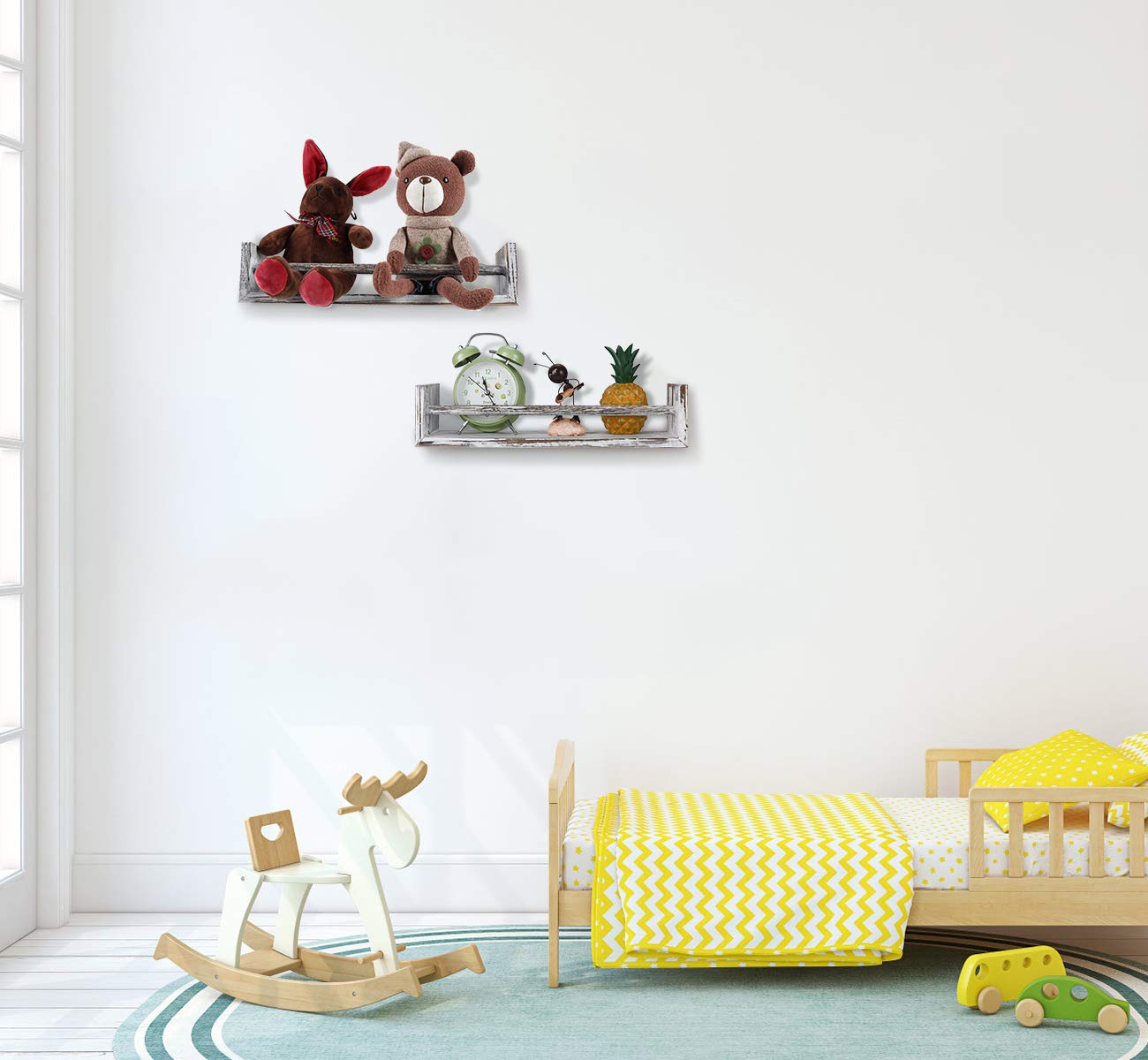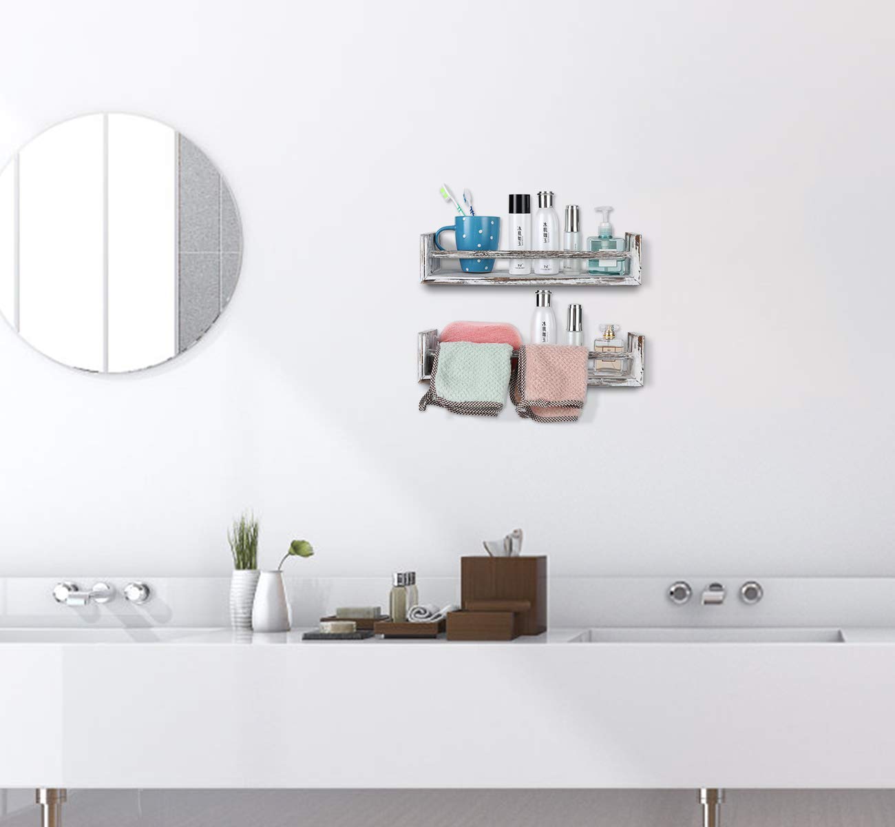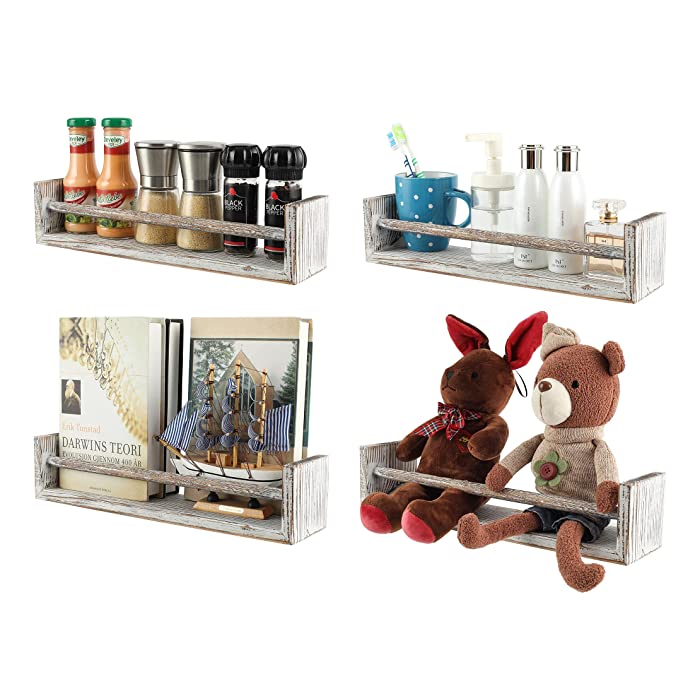 TQVAI- Juego de 4 estantes de pared de madera para dormitorio, sala de estar, baño, cocina, oficina, blanco rústico