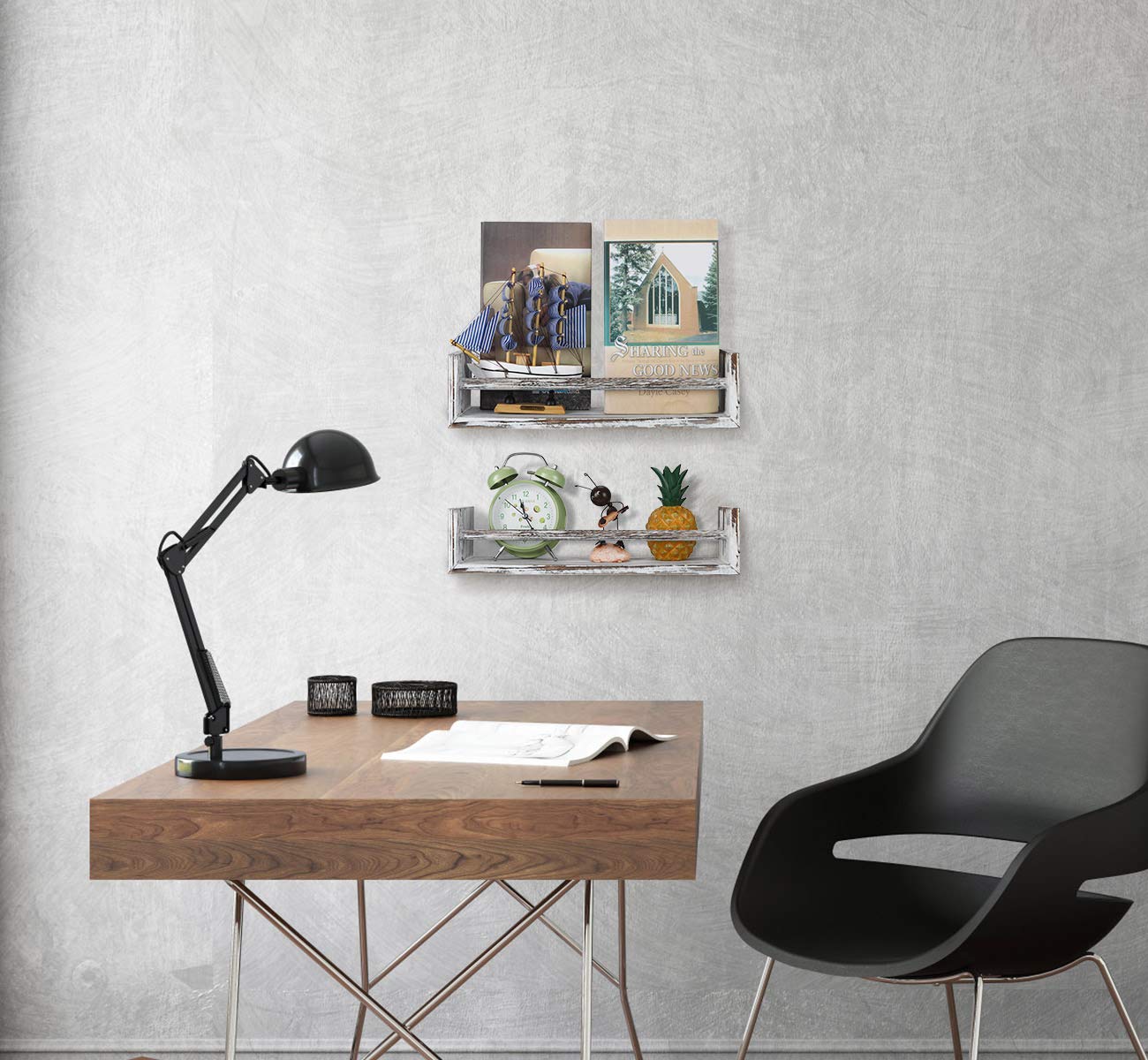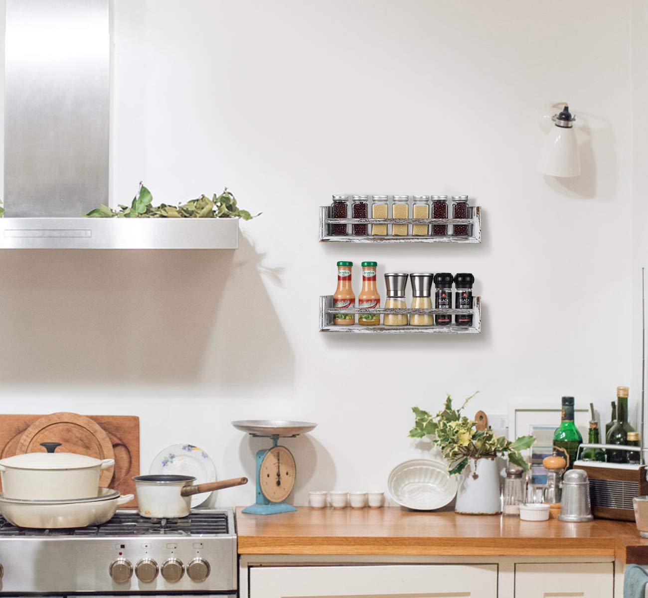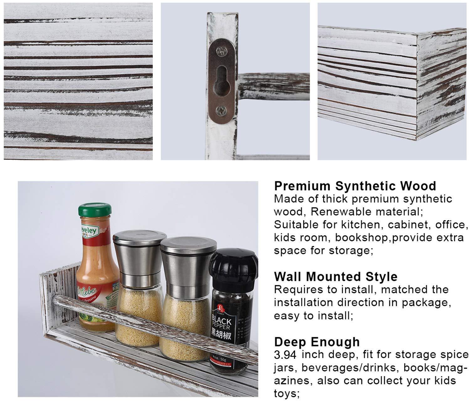 TQVAI- Juego de 4 estantes de pared de madera para dormitorio, sala de estar, baño, cocina, oficina, blanco rústico