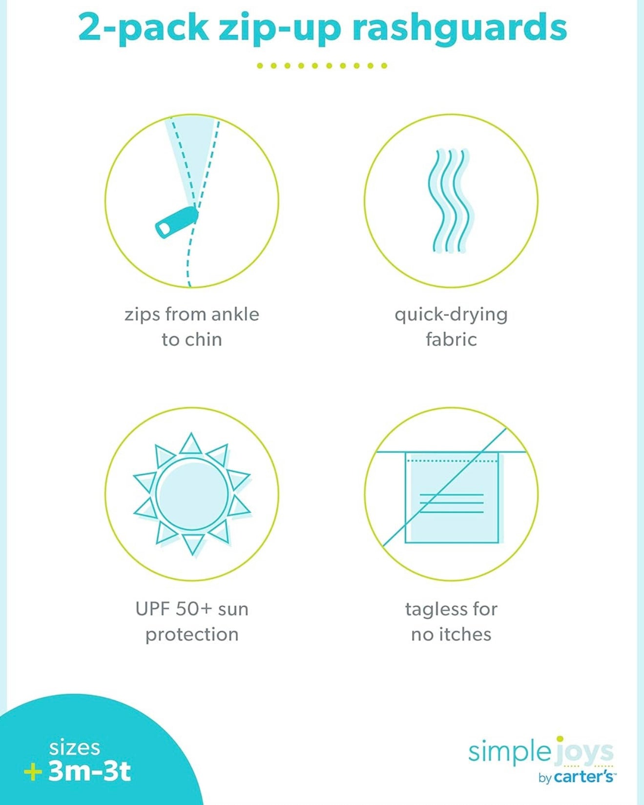 Traje de baño de una pieza con protección solar para bebés niños Simple Joys by Carter's (paquete de 2), 18 meses