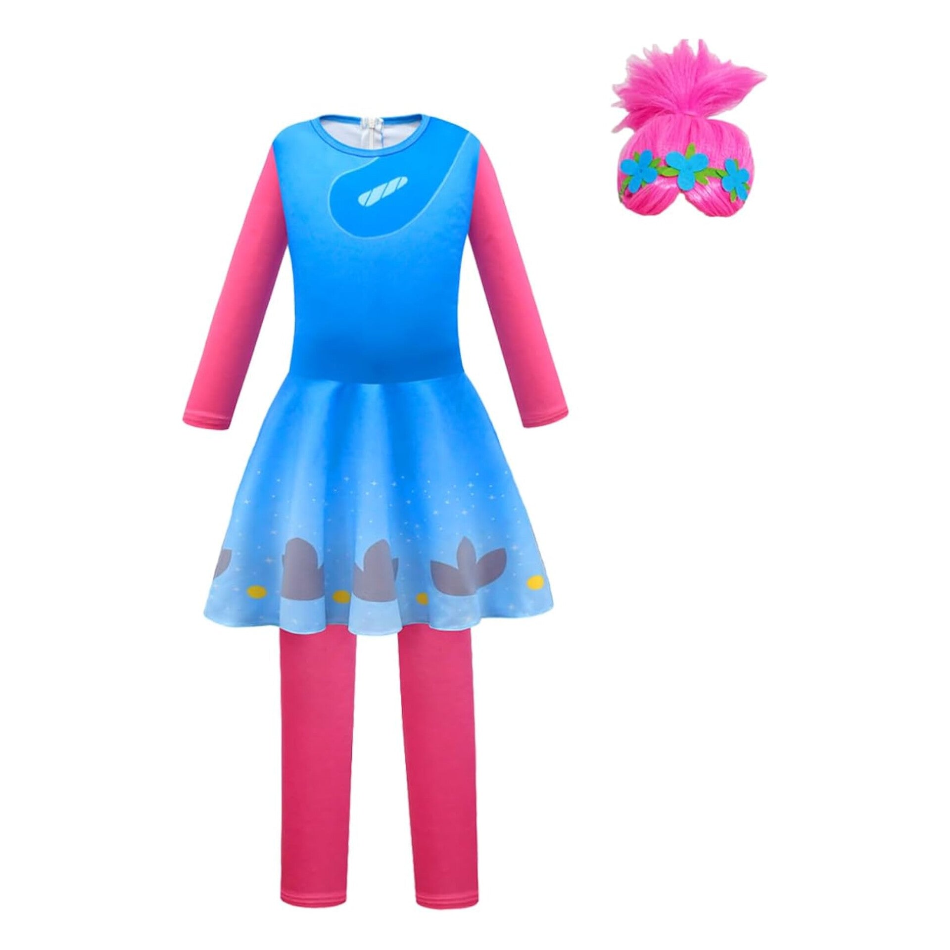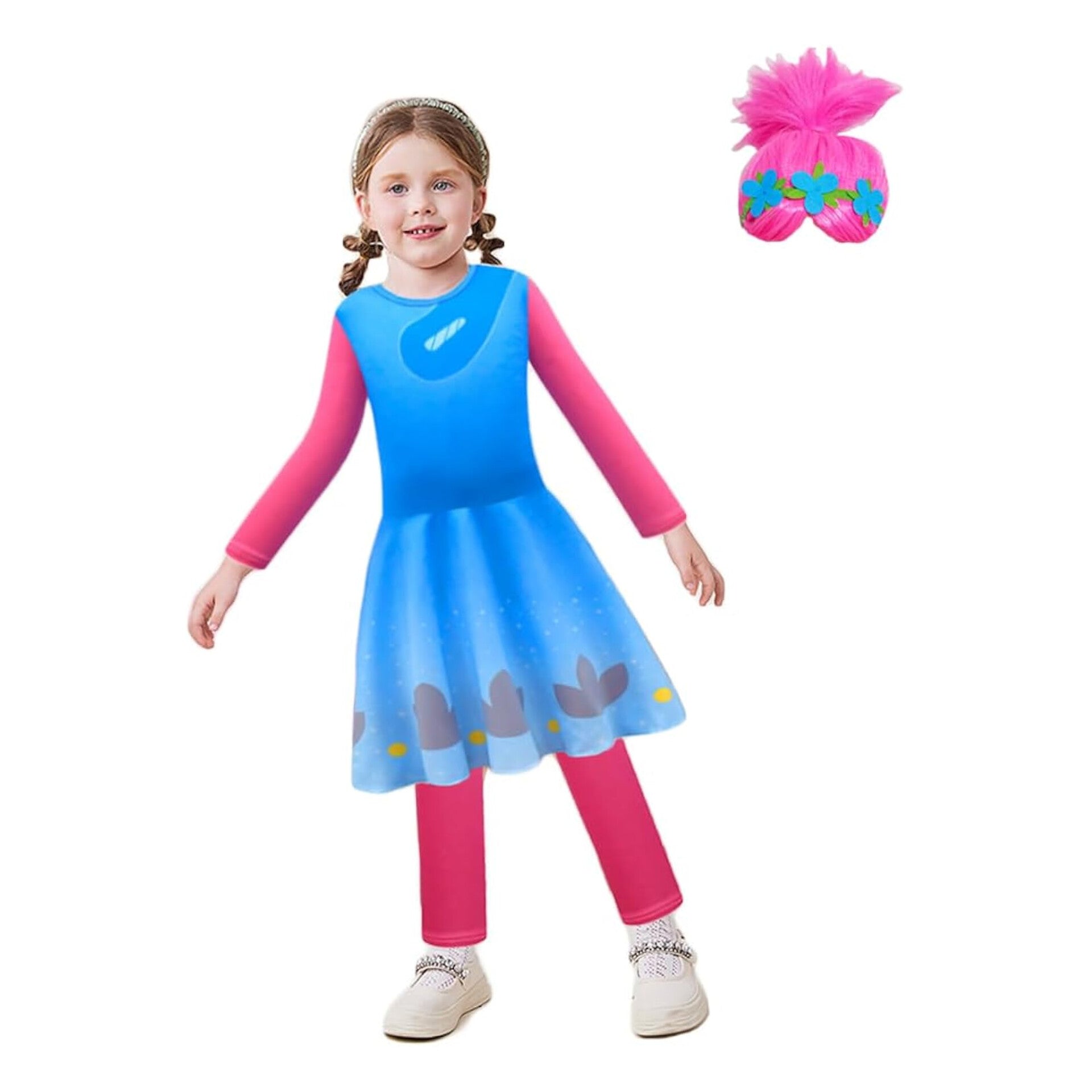 Trolls- Disfraz de princesa Poppy para niños con peluca, 4-6T
