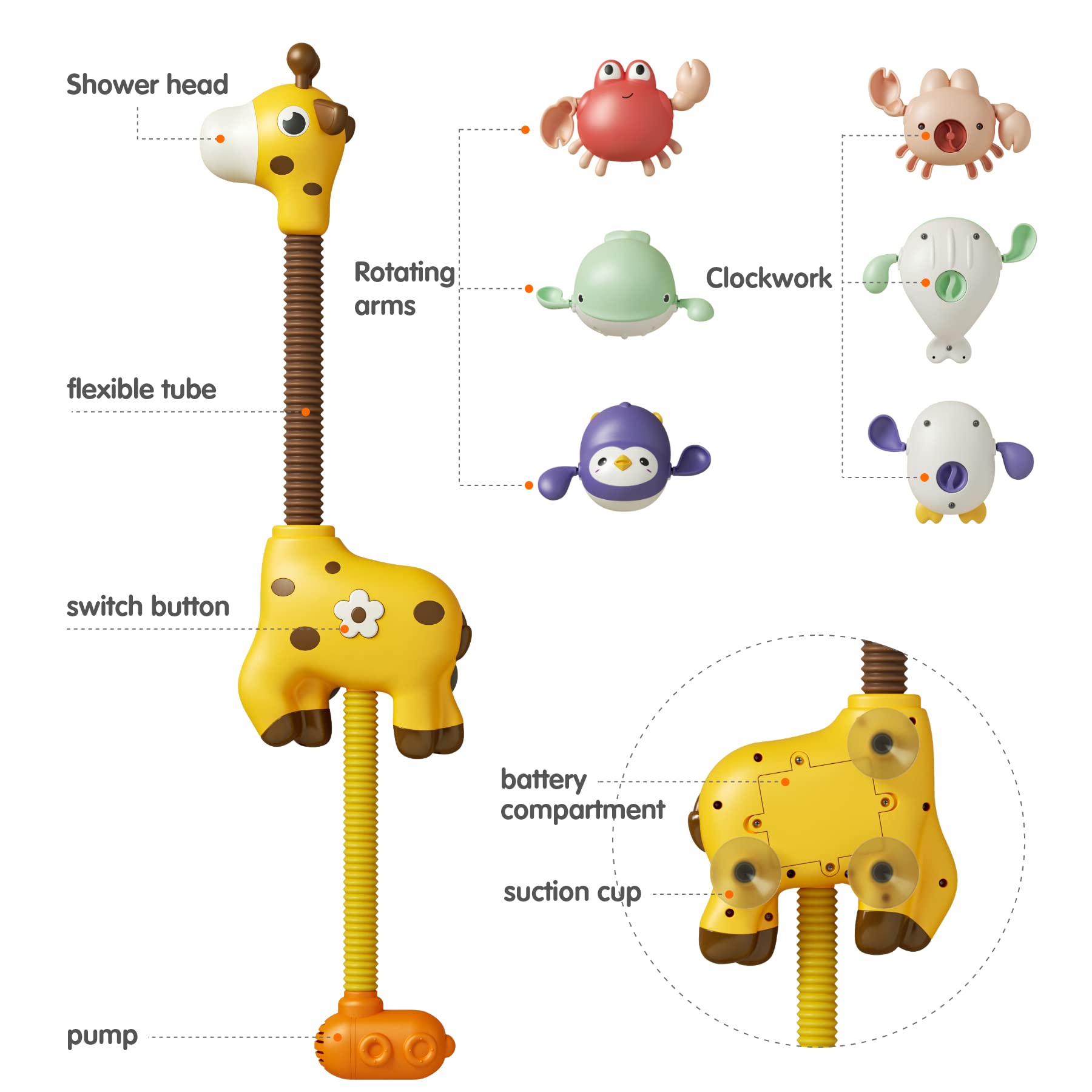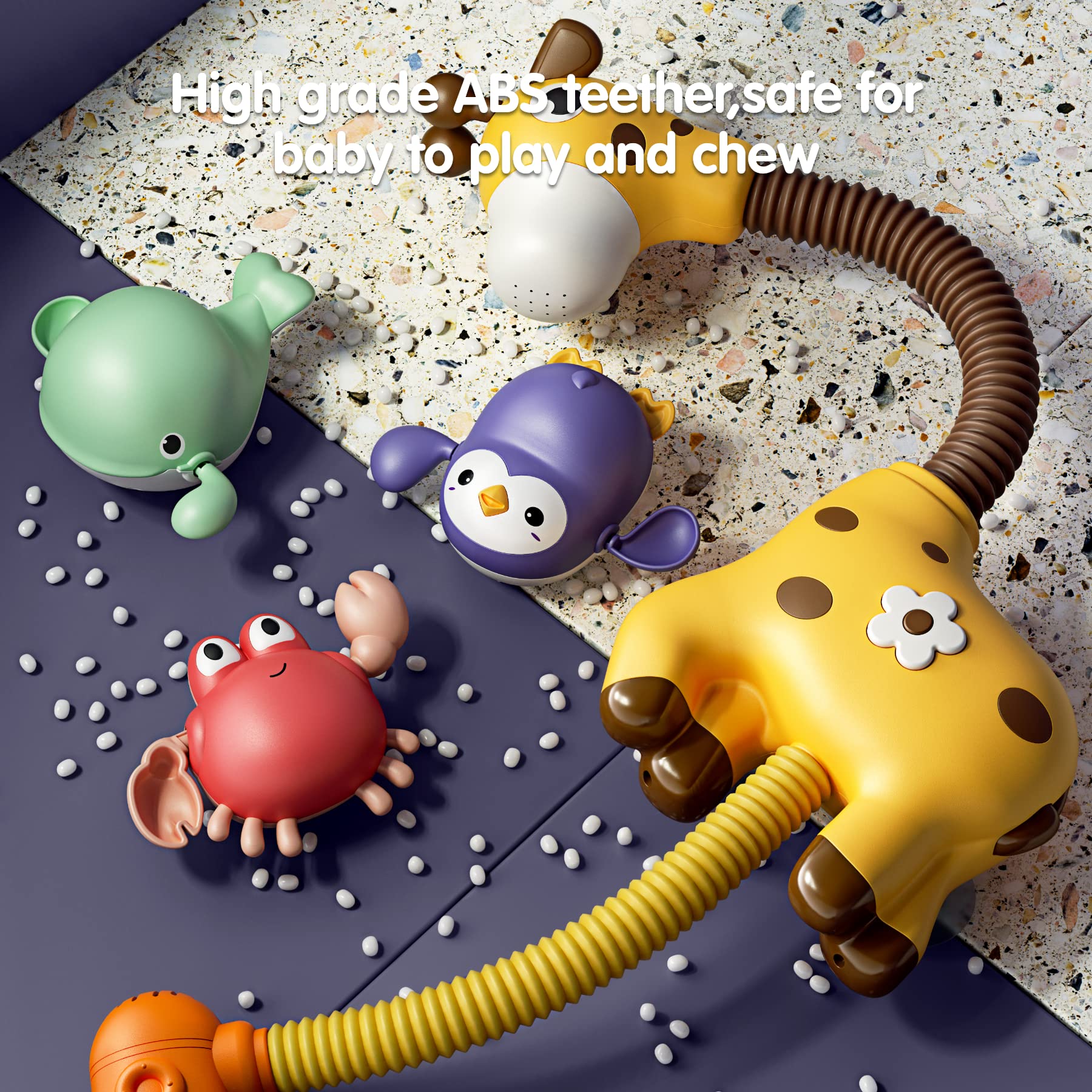 TUMAMA Juguete de baño para bebé con cabezal de ducha y 3 juguetes de natación enrollables