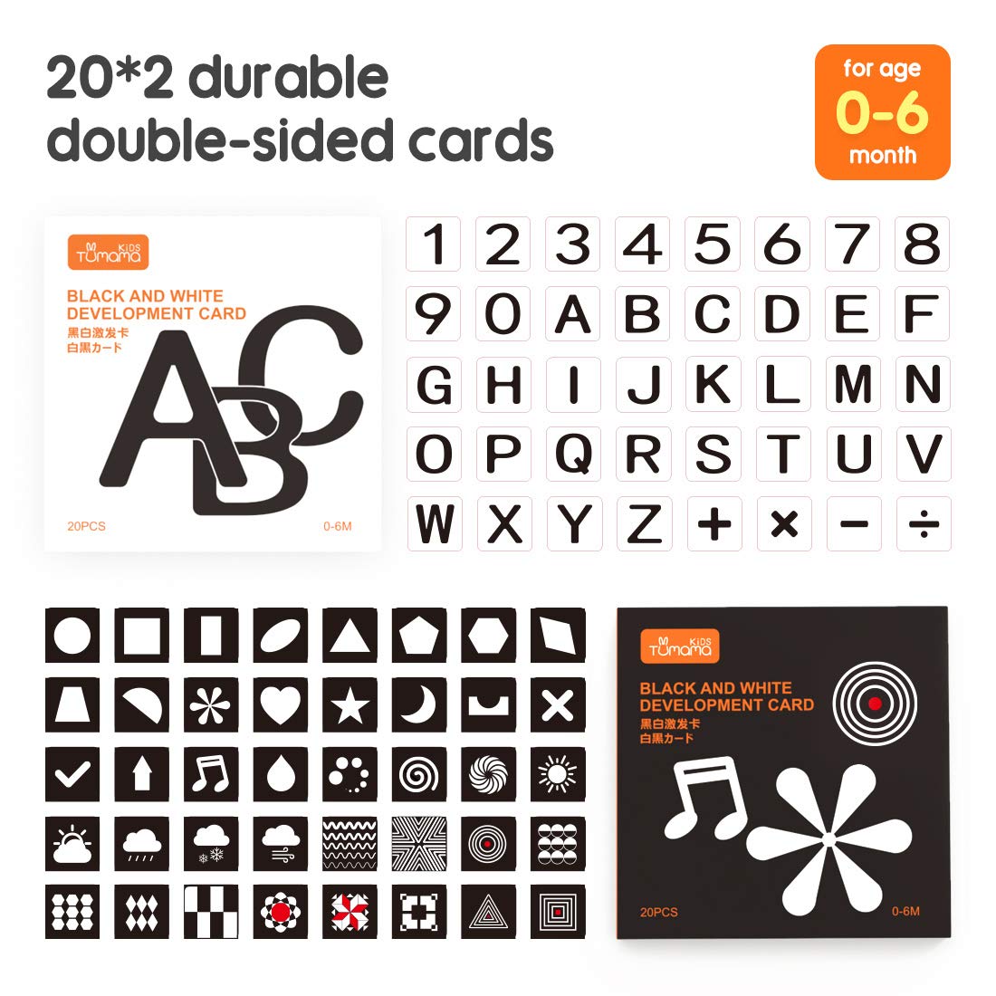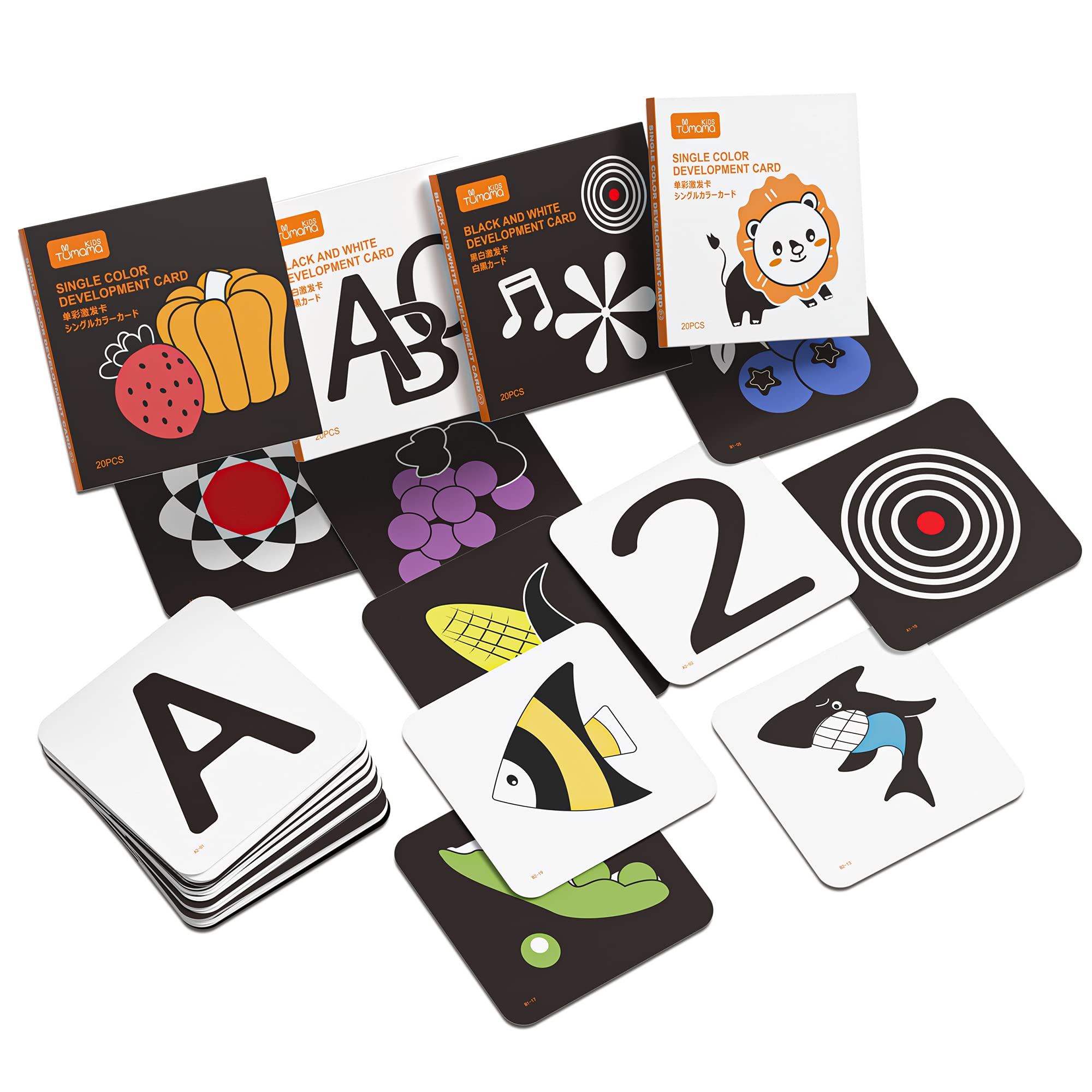 TUMAMA - tarjetas didácticas de aprendizaje de estimulación visual de alto contraste, 80 tarjetas
