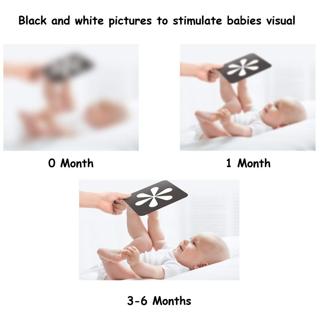 Estas tarjetas didácticas de animales en blanco y negro están cuidadosamente diseñadas para bebés de 0 a 12 meses y, para estimular la vista y el desarrollo cognitivo del bebé, son sensibles al color blanco y negro.