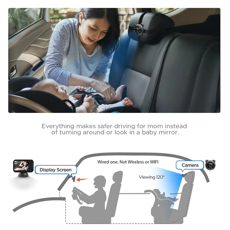 1. Nos da tranquilidad, la cámara para coche de bebé nos evita desviar la vista de la carretera para un viaje más seguro, mientras vigilamos a nuestro pequeño.
