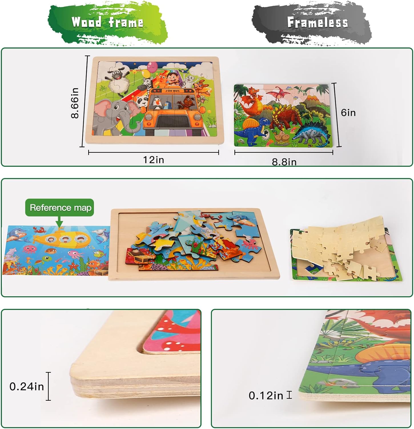 Tamaño más grande y madera más gruesa: vienen con la bandeja de rompecabezas de madera, puede almacenar fácilmente los rompecabezas sin ensuciar. Presentaba un tamaño de 12 pulgadas x 8,66 pulgadas de la bandeja de rompecabezas total, es más grande que los que miden solo 8,8 pulgadas x 6 pulgadas. Los rompecabezas individuales también son más duraderos y resistentes para un uso repetido.