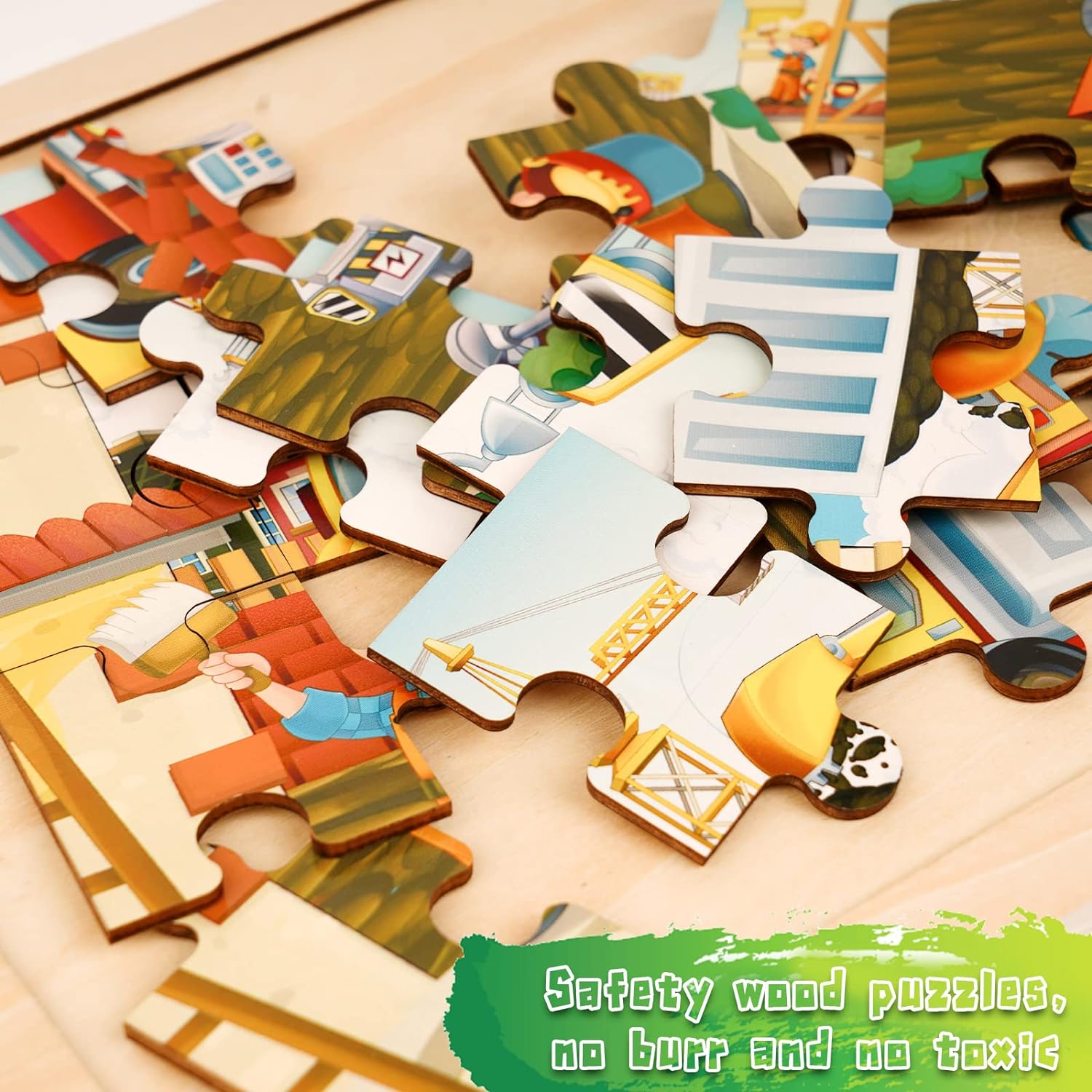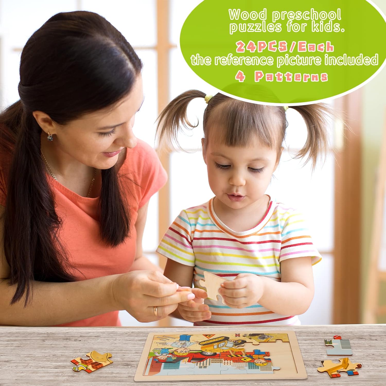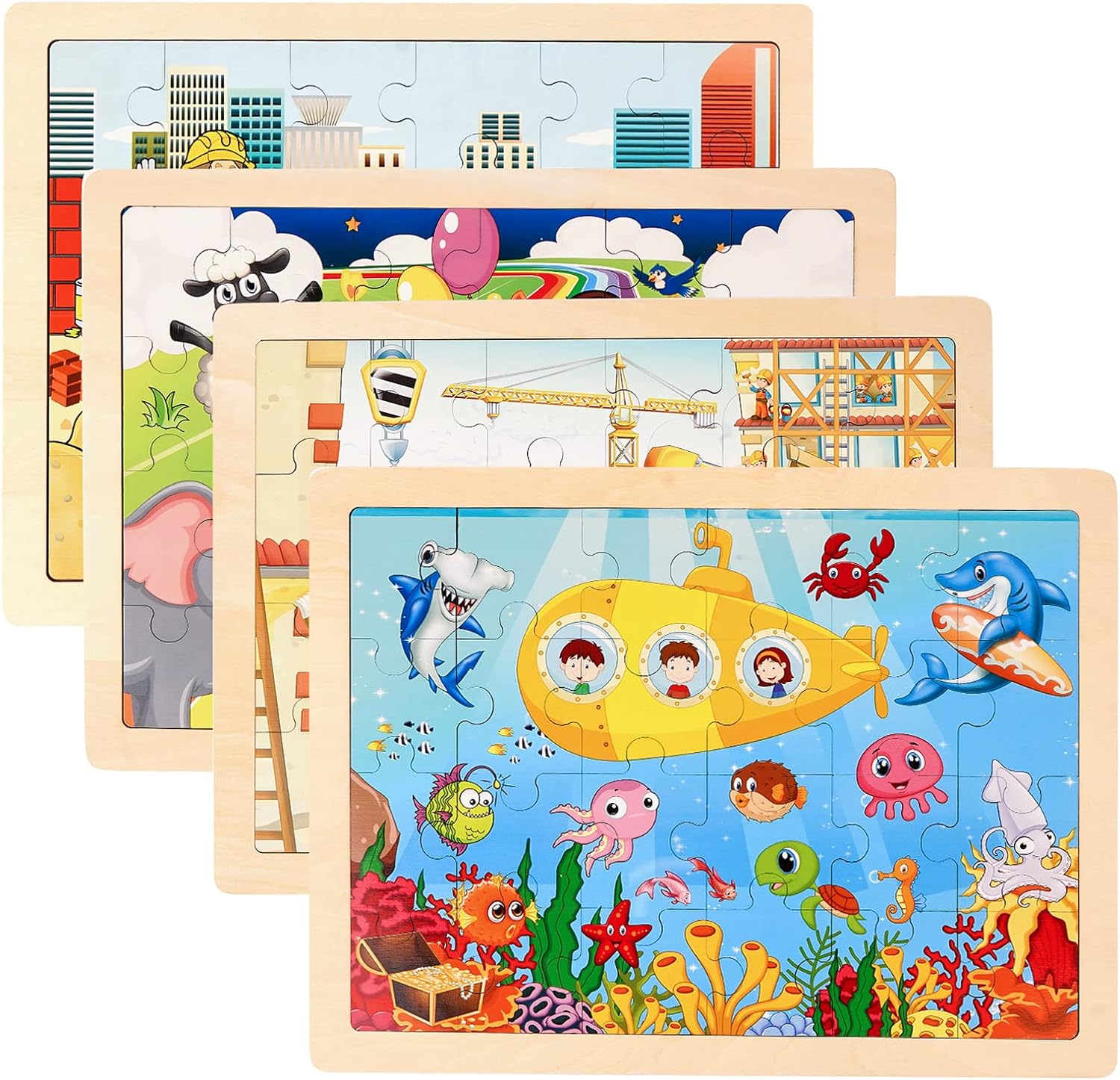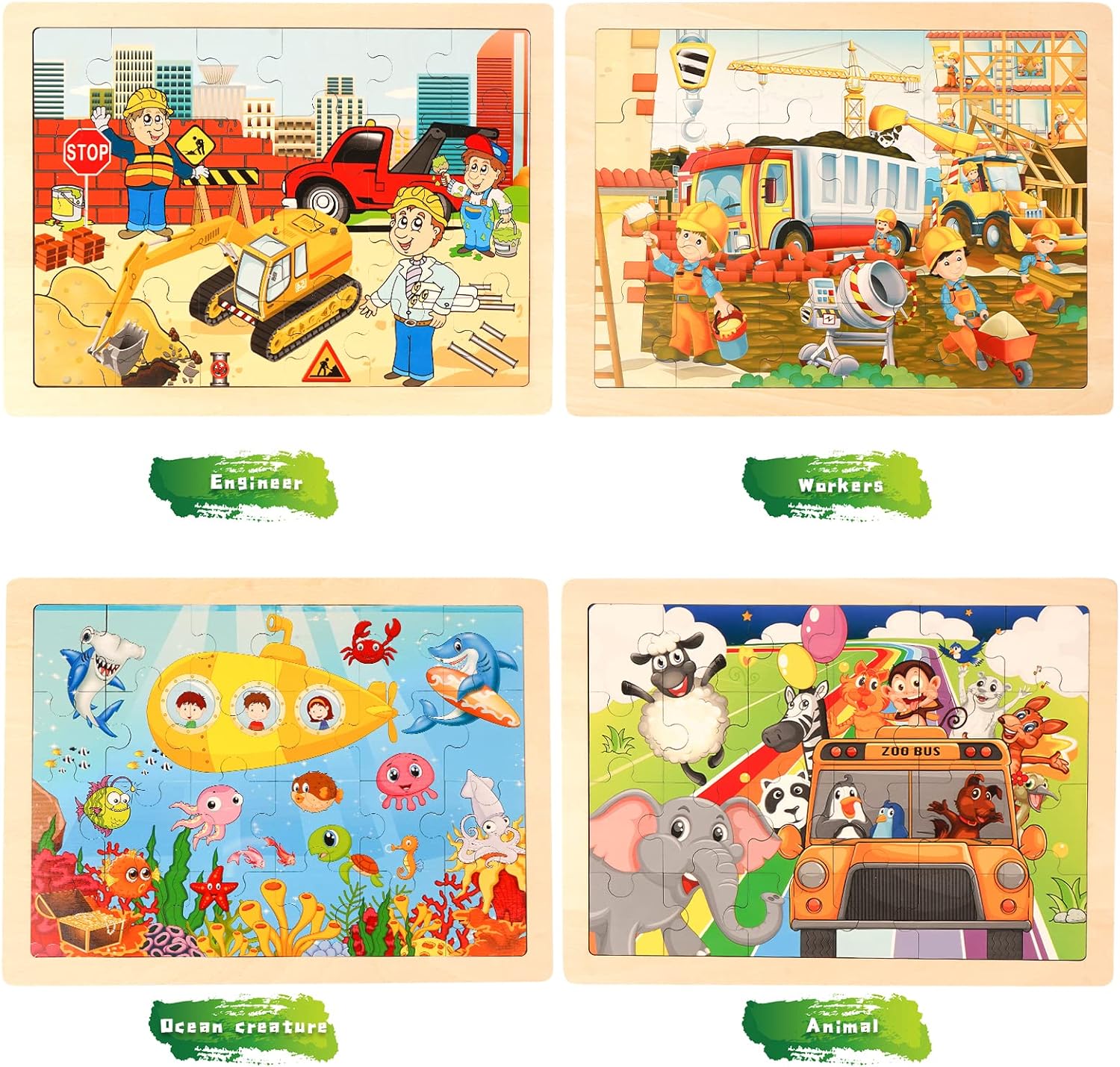 Se incluyen 4 rompecabezas diferentes: vienen con rompecabezas de animales, rompecabezas de ingenieros, rompecabezas de trabajadores y rompecabezas de océanos. Cada rompecabezas viene con 24 piezas y una imagen de instrucciones. Los niños pueden terminar estos divertidos rompecabezas de acuerdo con él.
