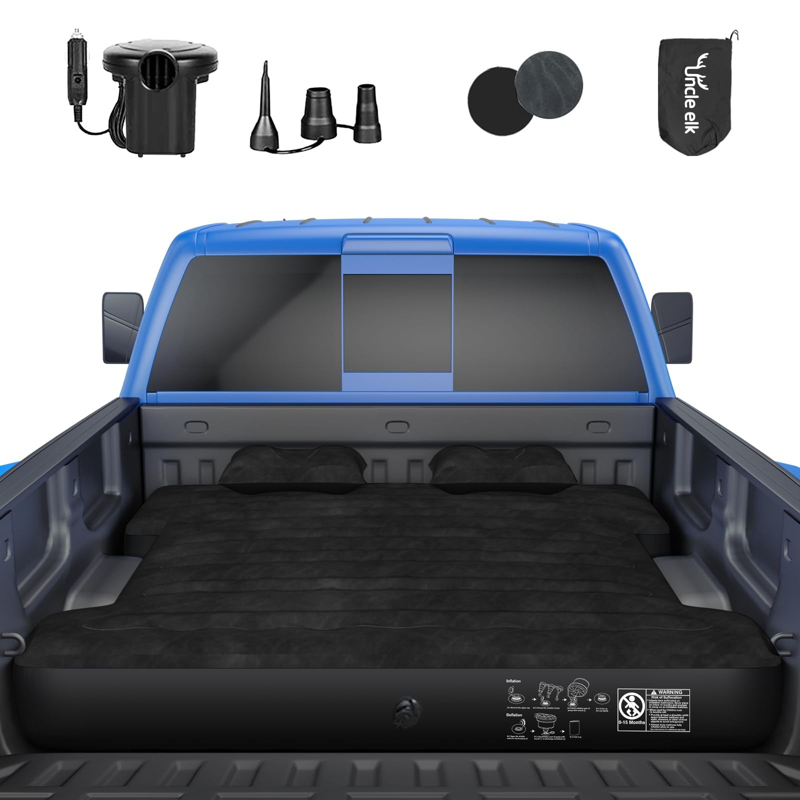 Uncle elk colchón inflable para camioneta, tamaño completo, 2 almohadas