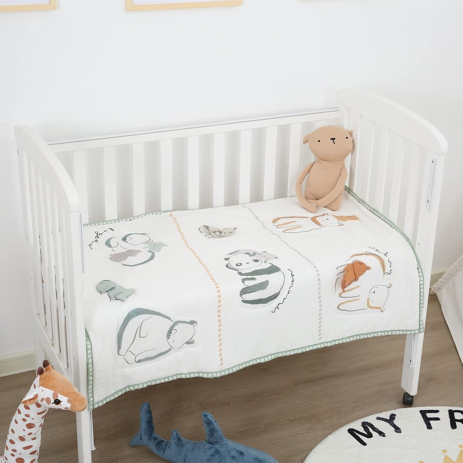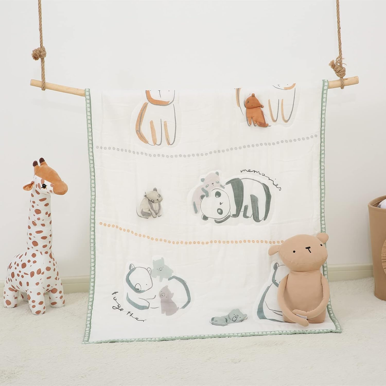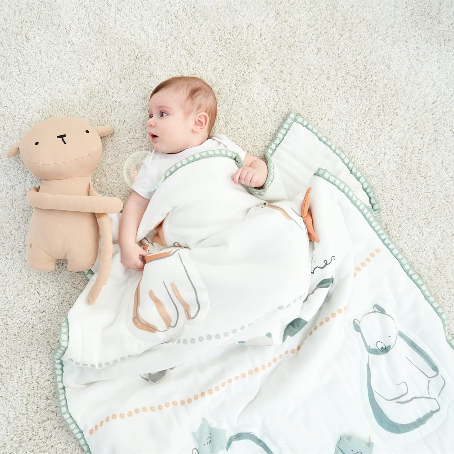 -Manta de bebé de alta calidad: elegimos 100% fibra de algodón de bambú con muselina de tejido liso para hacer nuestros edredones para garantizar un tejido suave y transpirable para la delicada piel del bebé. El interior de la muñeca está relleno de algodón DuPont, lo que hace que el producto sea más cómodo y suave.